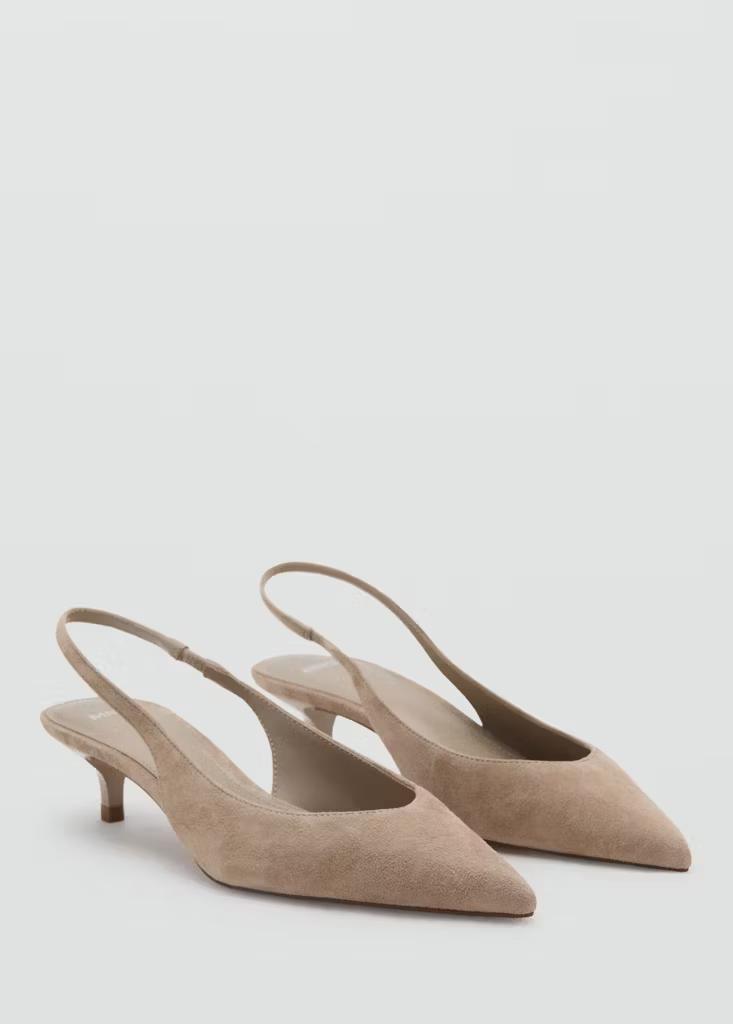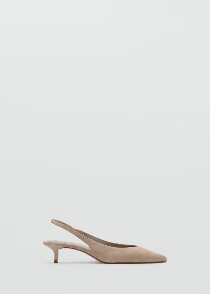 100% piel caprino. Piel de ante. Con punta. Tacón kitten. Destalonado. El tacón mide 4,5 cm