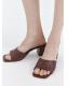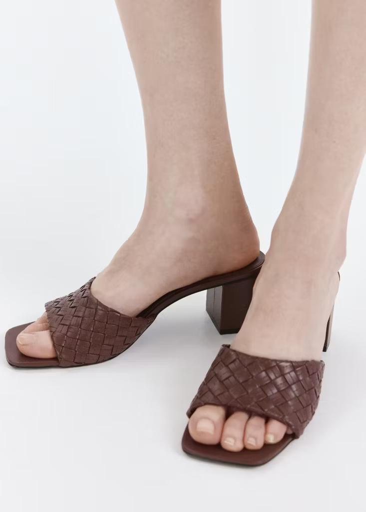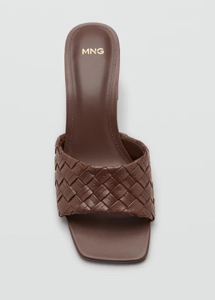 Diseño destalonado. Puntera abierta. Diseño de tira. Tira trenzada. Sin cierre. Tacón bloque. El tacón mide 6,5 cm