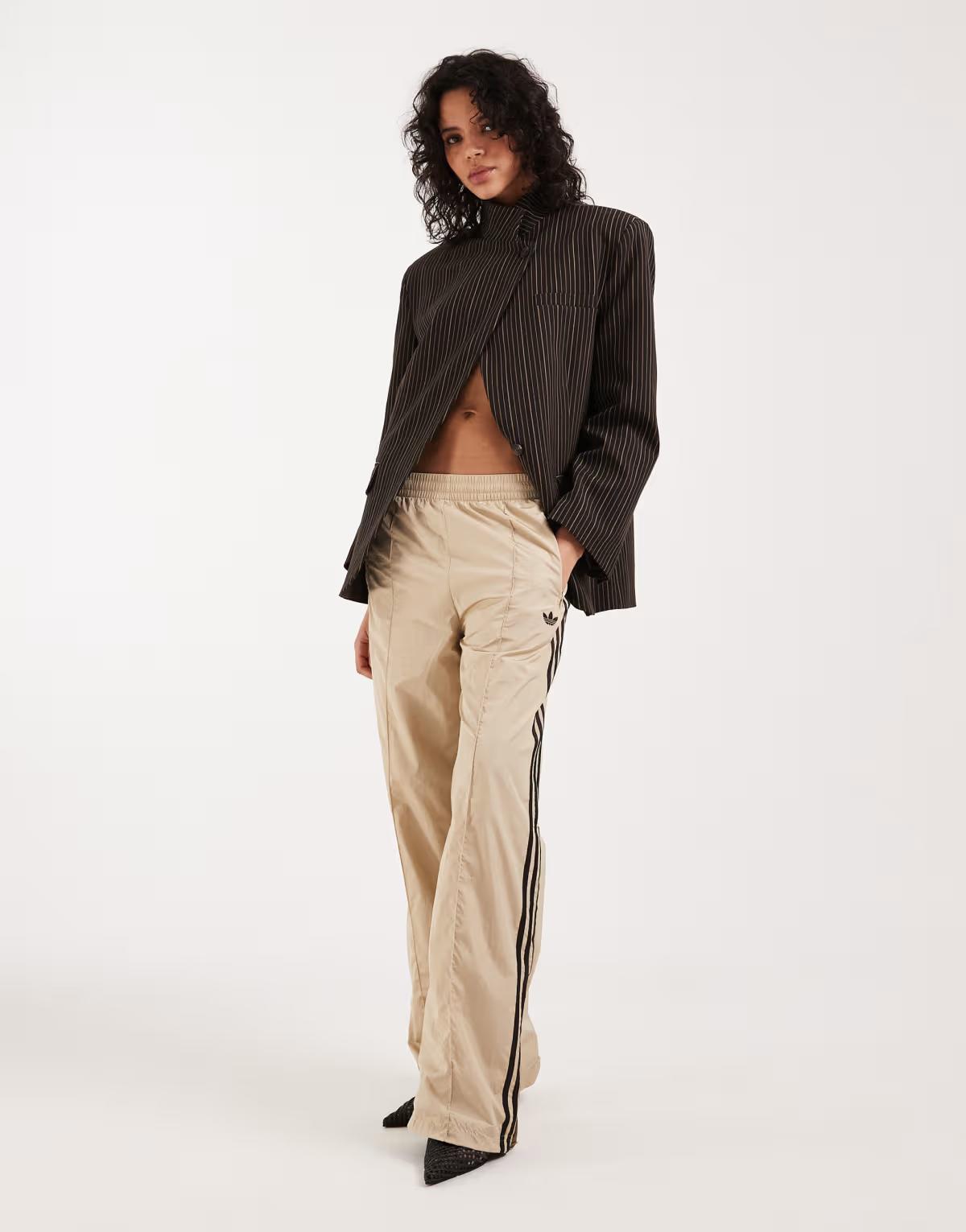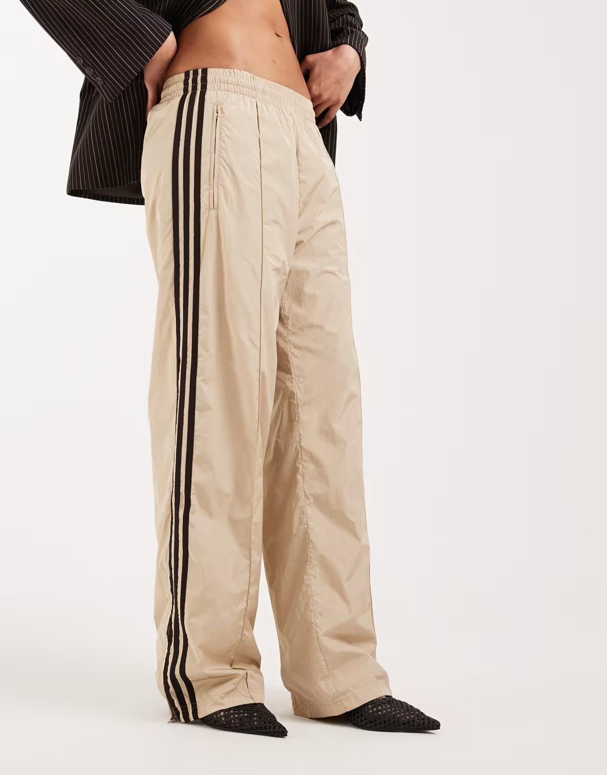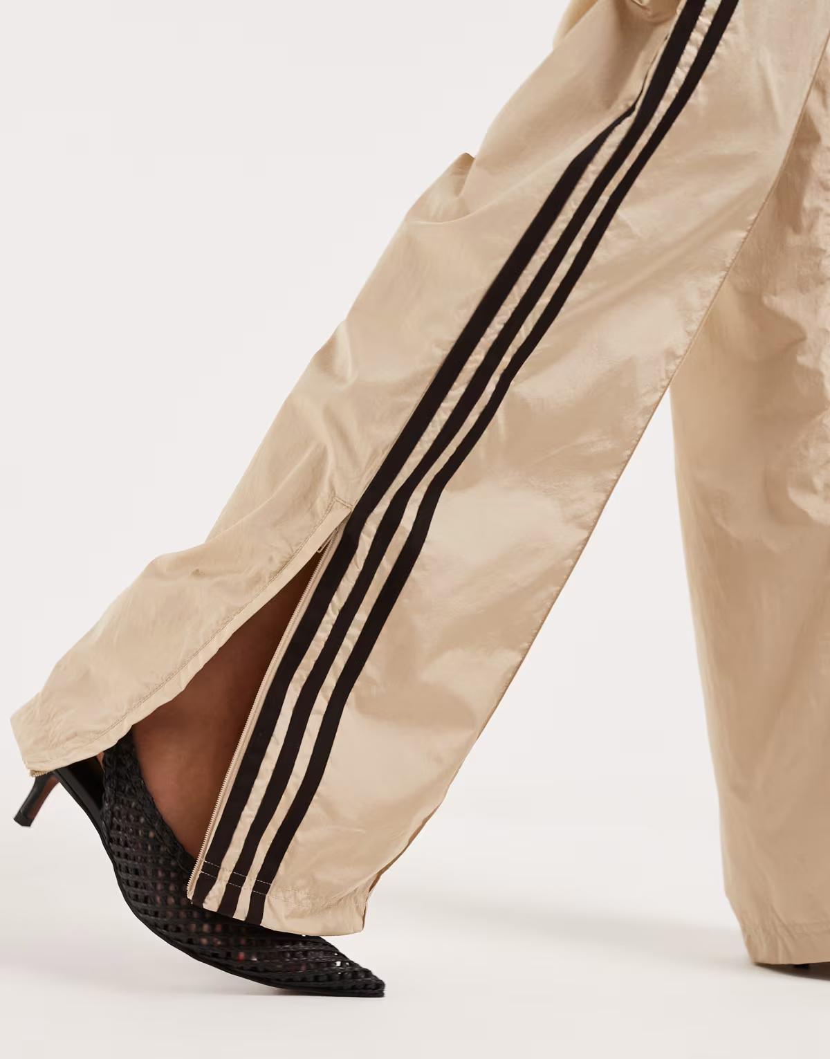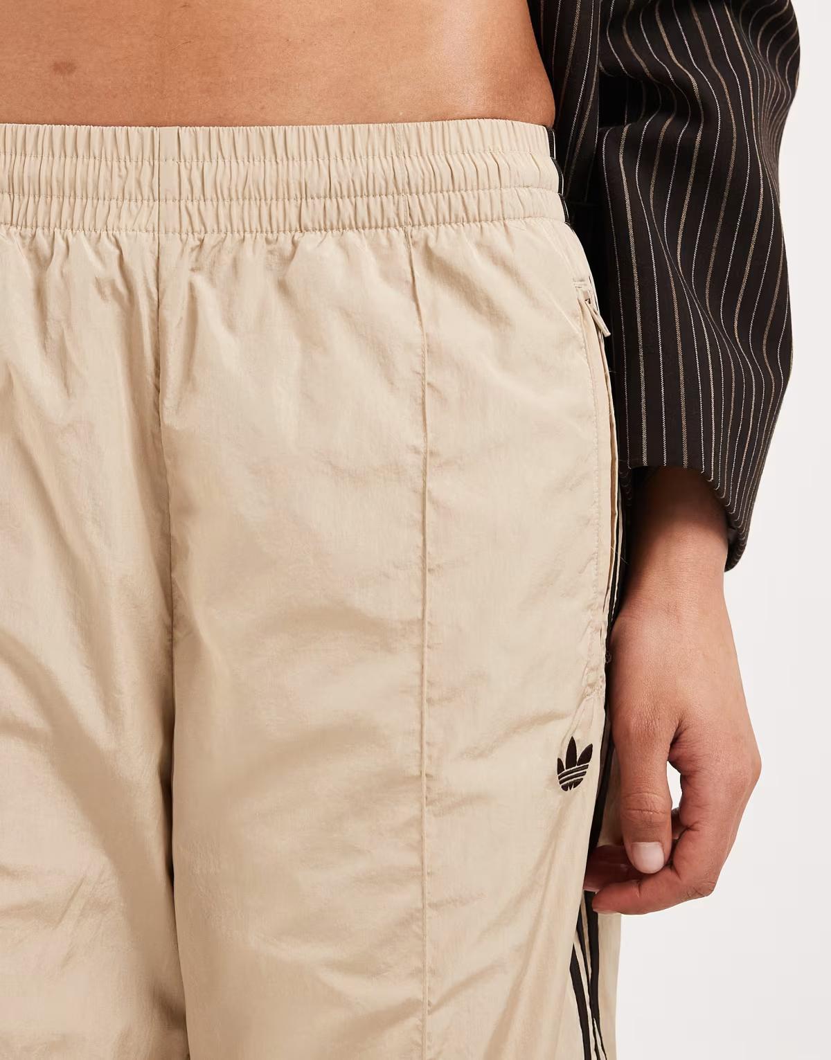 adidas Originals Firebird loose nylon track pants in light khaki and brown