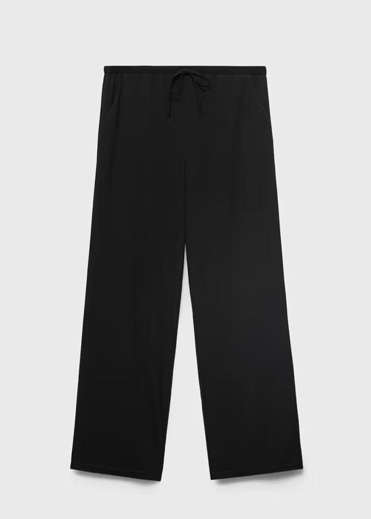 Diseño largo. Diseño recto. Tiro medio. Cintura con cordón ajustable. Dos bolsillos laterales. Sin cierre. Total look. Cintura con goma elástica. Lazo ajustable en la cintura. Producto en promoción