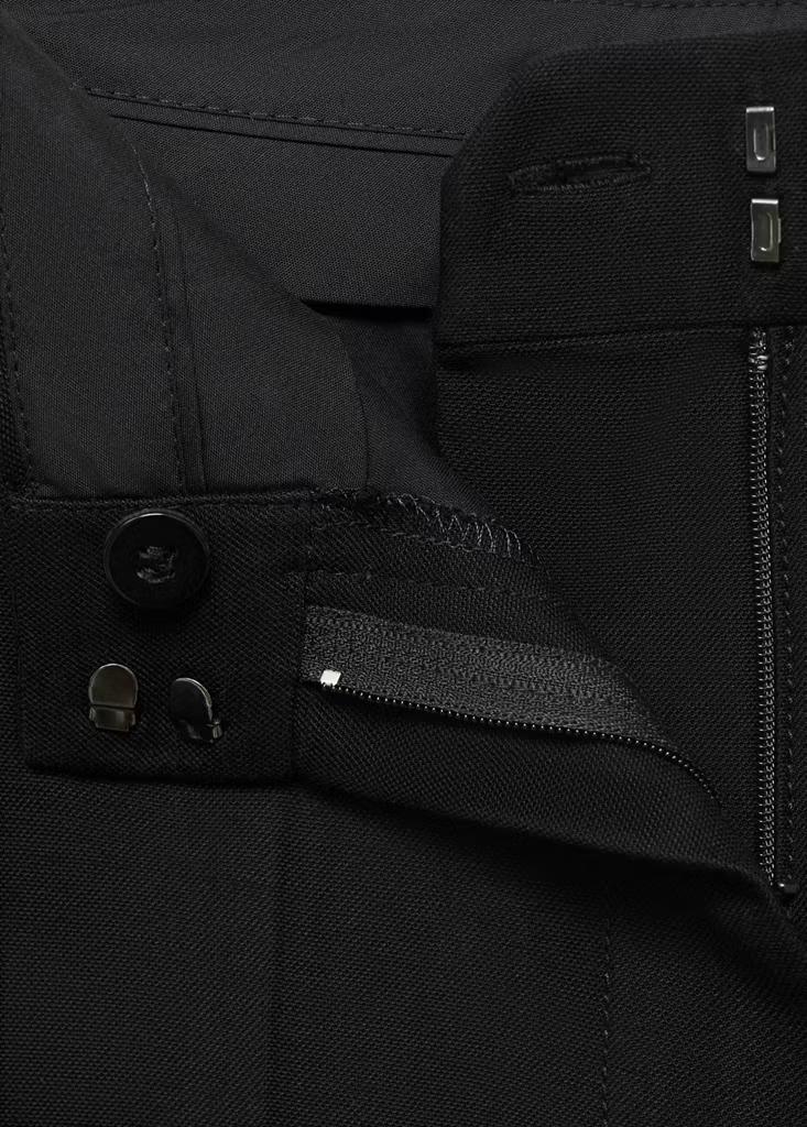 Diseño largo. Diseño recto. Tiro medio. Dos bolsillos laterales. Dos bolsillos de ribete en la parte posterior. Cierre oculto de botón, gancho y cremallera. Total look