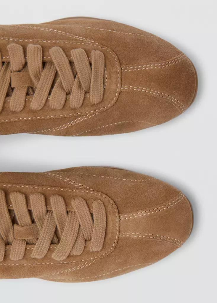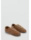 Piel bovino. Punta redonda. Panel en contraste. Cierre de cordones. Flat
