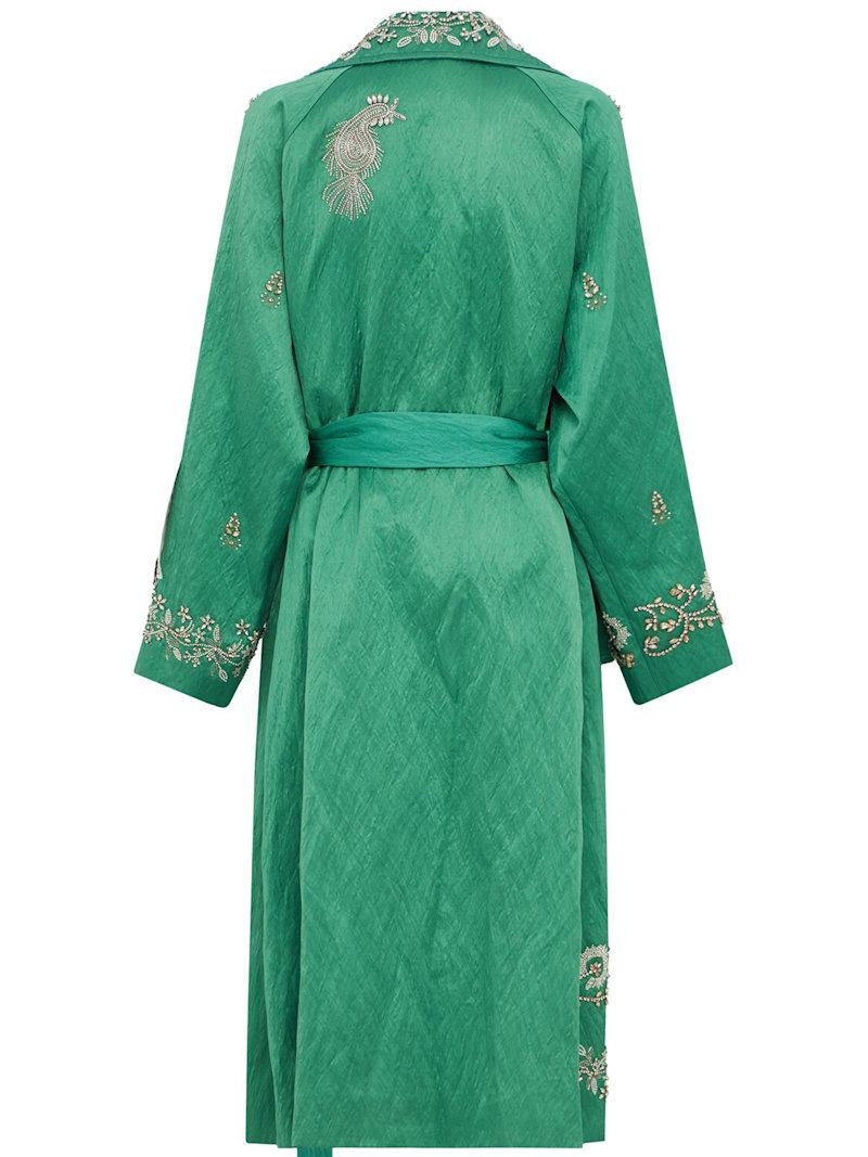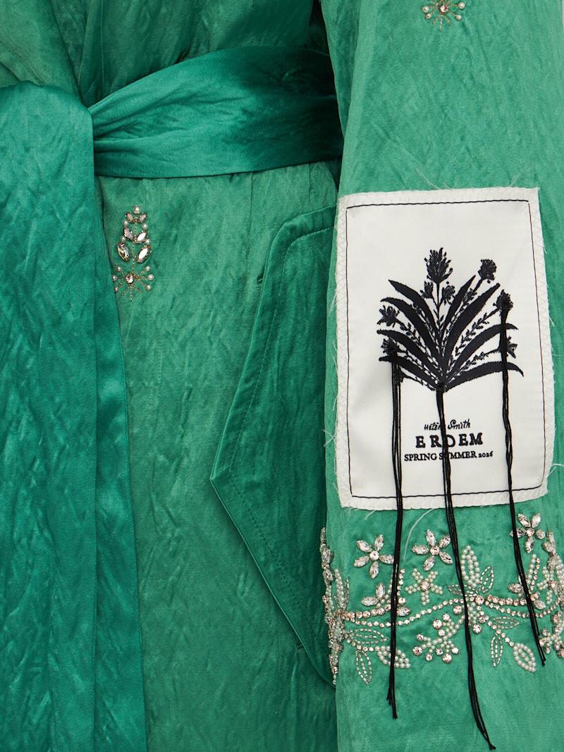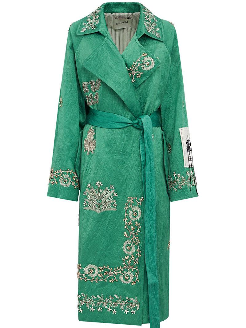Embellished textured satin trench coat - 绿色/多色 - 女士 - Erdem - Includes matching belt.