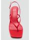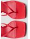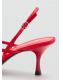 Diseño de tiras. Puntera abierta. Cierre de tira con hebilla. Tacón embudo. El tacón mide 7 cm. El color rojo es exclusivo online