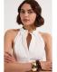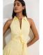 Cotton Collared Halter Neck Woven Midi Shirt Dress With Dropped Waist Detail
