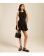 This sleek black mini dress is your go-to for any occasion. Its slim silhouette ensures you look effortlessly stylish while the puffball hem adds a playful finish.