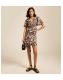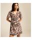 Precisely shaped for a flattering finish, this brown animal-print mini dress has a V-neckline and short flutter sleeves before extending in a slender profile.