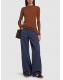 透明棉质罗纹长袖T恤 - 棕色 - 女士 - Auralee - 罗纹领口、袖口和下摆