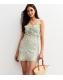 Neckline: squared V-neck, tie detail