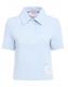 格纹花呢短袖POLO衫 - 浅蓝色 - 女士 - Thom Browne - 正面半开襟纽扣.