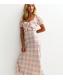 Tall. Preppy and sophisticated, this cream midi dress softly skims your figure in bold check. The squared sweetheart neckline features tie detail and floaty ruffles.