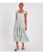 Elevate your style with this tiered midi dress from QUIZ. It has playful ruffle straps and a textured Swiss dot fabric.