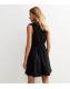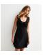 This black mini dress combines a collared neckline with a flared shape for a flattering silhouette. It is a versatile piece for styling up or down.