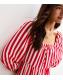 This red striped smock dress is designed for relaxed summer styling. It has a pretty U neck that flows out to a tiered hem.