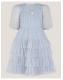 Hello princess! Doused in a pastel hue, this dress is designed with long sleeves and the prettiest ruffles to the skirt. Finished with an embellished collar and bow to the front. Blue