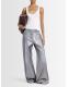 裂纹处理镂空阔腿牛仔裤 - 蓝色/银色 - 女士 - The Attico - 正面纽扣和隐藏式拉链开合.