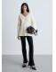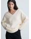 Punto medio. Diseño recto. Diseño oversize. Cuello pico. Manga larga. Terminaciones de canalé. La modelo mide 1,77 y lleva una talla S/36