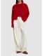 Brynn低腰阔腿牛仔裤 - 米白色 - 女士 - 正面绑带式开合.