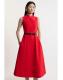 Compact Stretch Wrap Neck Tailored Midi Dress