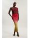 Ombre One Shoulder Mesh Jersey Maxi Dress