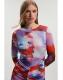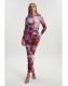 Floral Printed Mesh Ruched Long Sleeve Maxi Dress