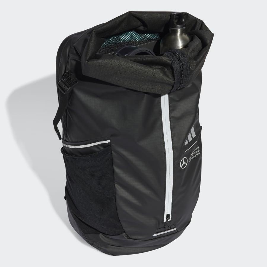 Dimensions: 51 cm x 26 cm x 18 cm","100% thermoplastic polyurethane","AEROREADY back panel","Front zip pocket and side pocket for water bottle","External laptop compartment","Adjustable chest strap with buckle closure","Mercedes - AMG Petronas Formula One Team logo","Contains at least 50% recycled content"