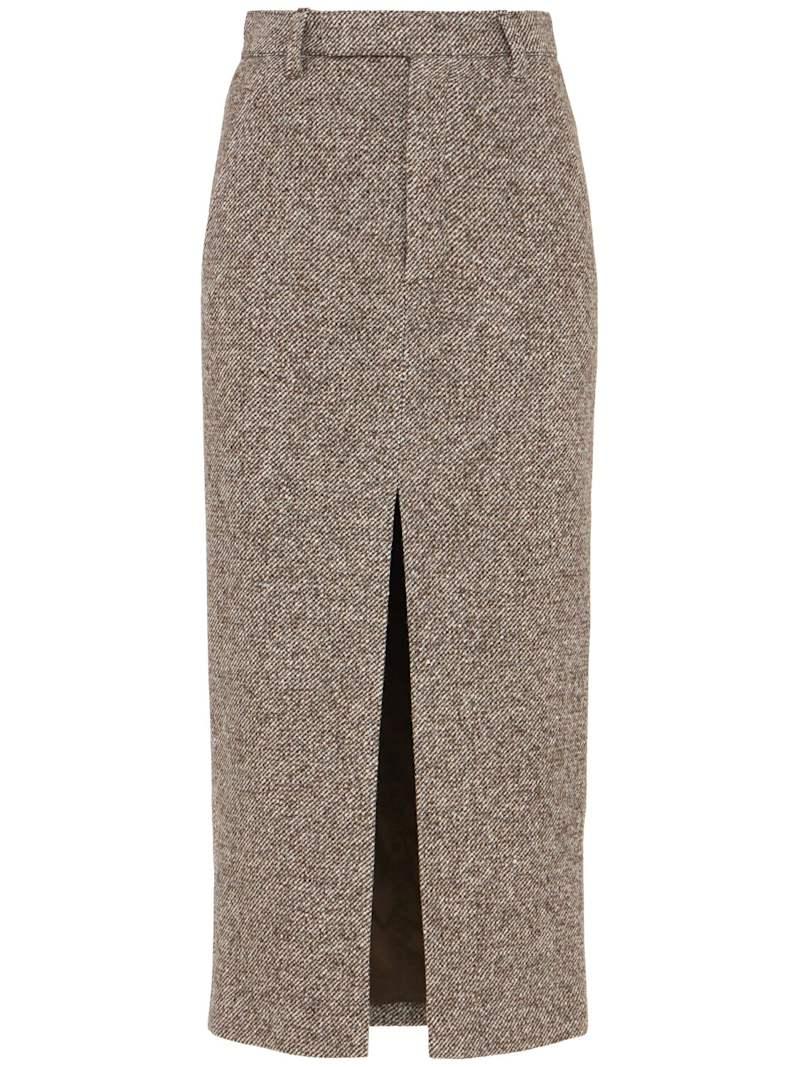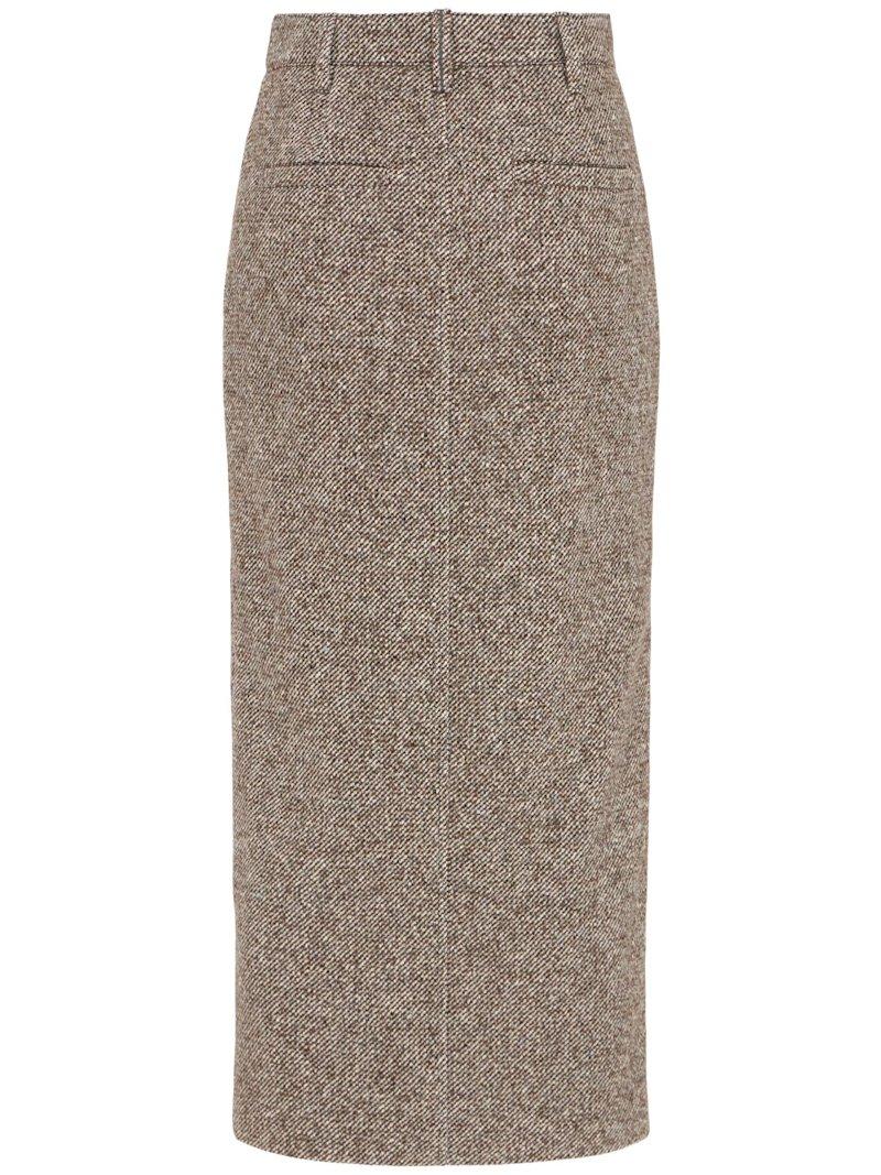 正面开叉针织长款半身裙 - 棕色/多色 - 女士 - Brunello Cucinelli - 隐藏式正面粘扣开合.