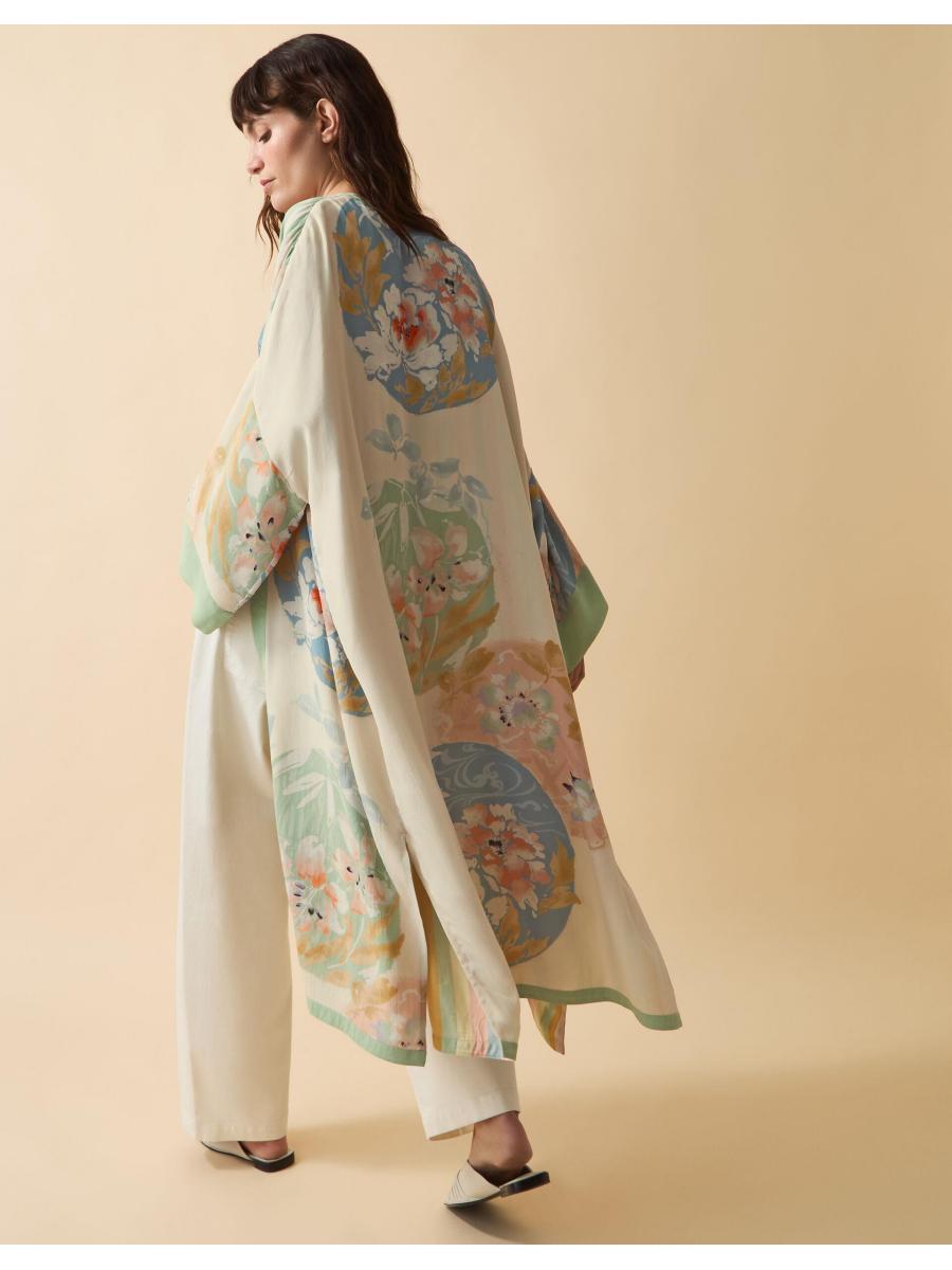 The product: Fashion meets art. In need of an effortless layer to instantly elevate all your looks? Cue the kimono. Cut with wide sleeves and an elegant calf-skimming hem, it showcases an ornate floral print from the archives of The Design Library by artist, Giorgio Taroni. Equal measures feminine and boho, it's a real hero piece for your wardrobe of wonders.