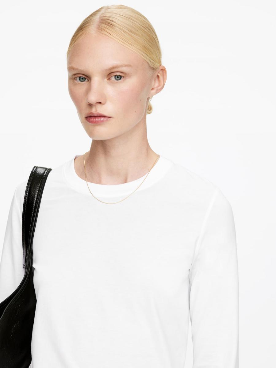A cornerstone of our signature jersey collection, IRIS is a T-shirt crafted from airy, midweight cotton jersey, offering a soft touch against the skin. Finished with long, uncuffed sleeves and a ribbed crew neck for a clean, timeless look. 150 GSM. Regular fit.ARKET/Women's clothes/Women's tops/Women's T-shirts