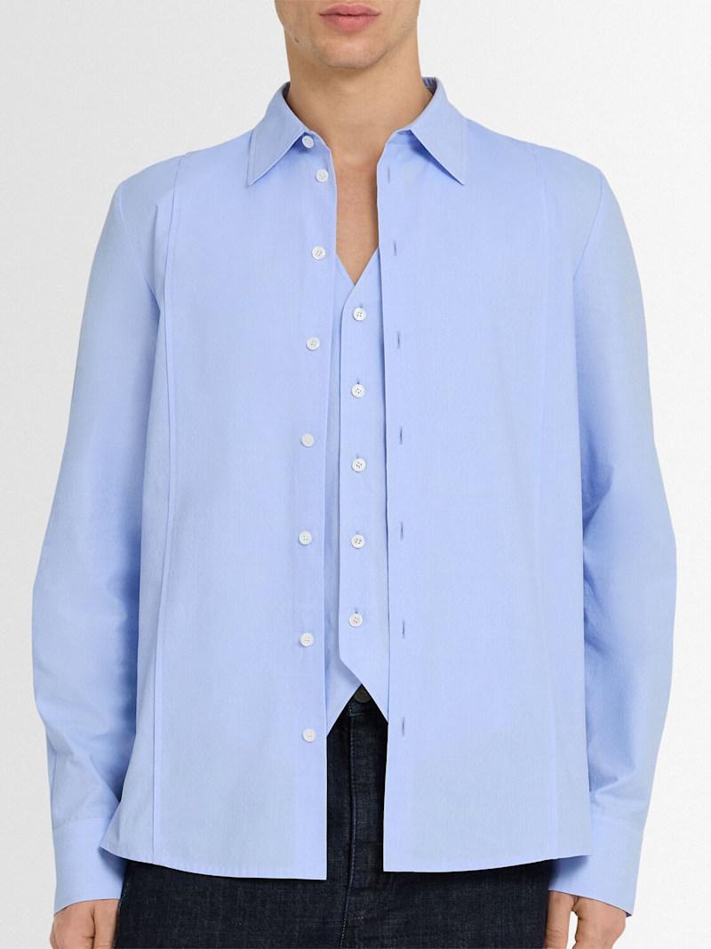 层叠棉质衬衫 - 浅蓝色 - 男士 - Eenk - 正面纽扣开合.