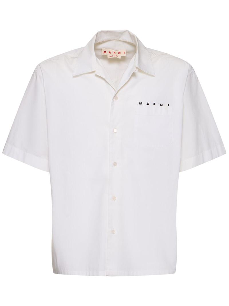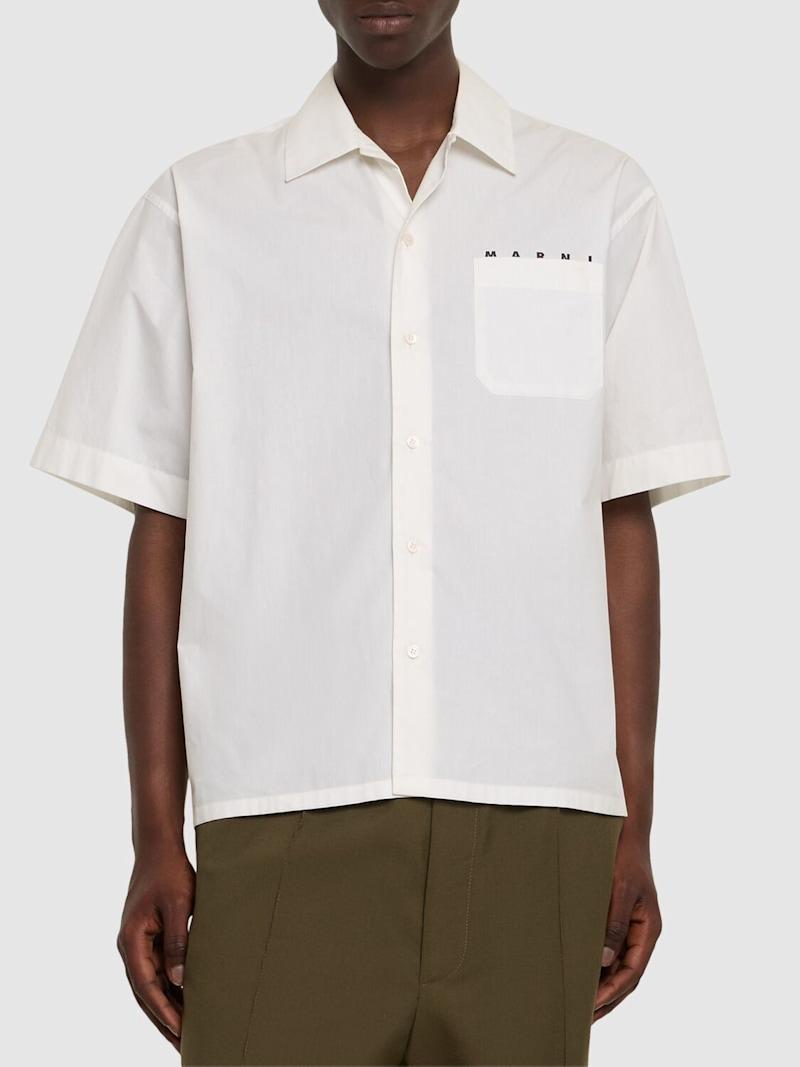 Logo棉质府绸boxy版型短袖衬衫 - 白色 - 男士 - Marni - 正面纽扣开合.