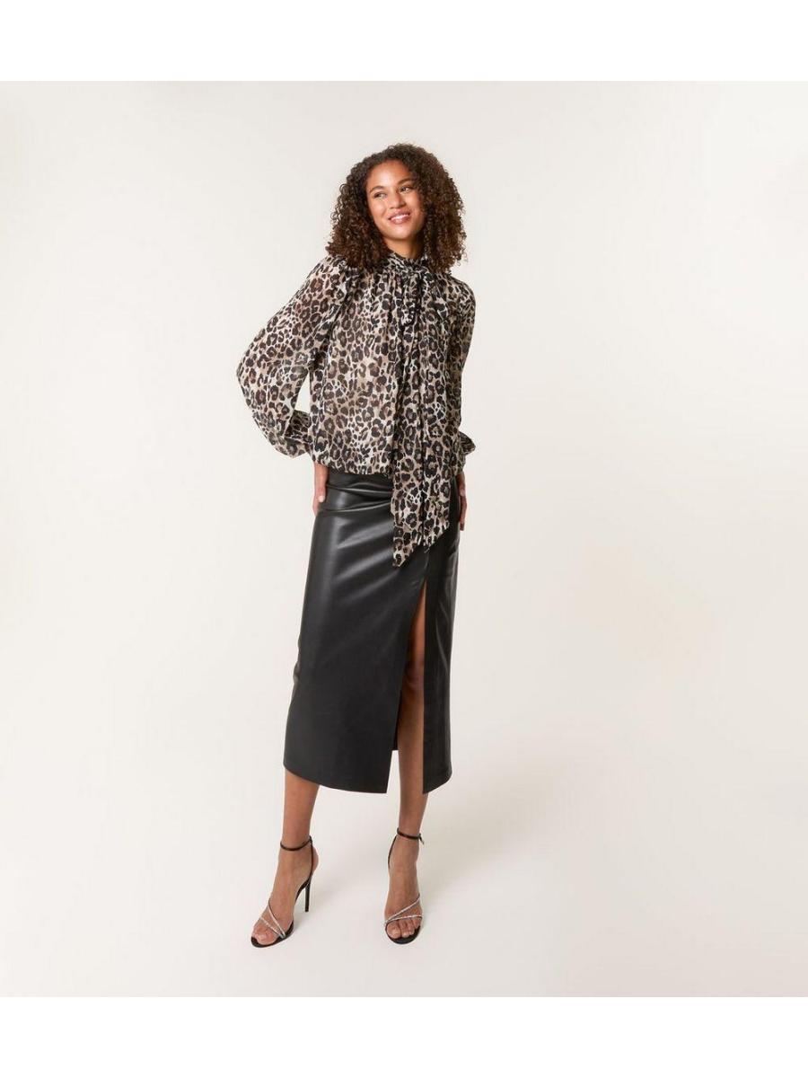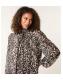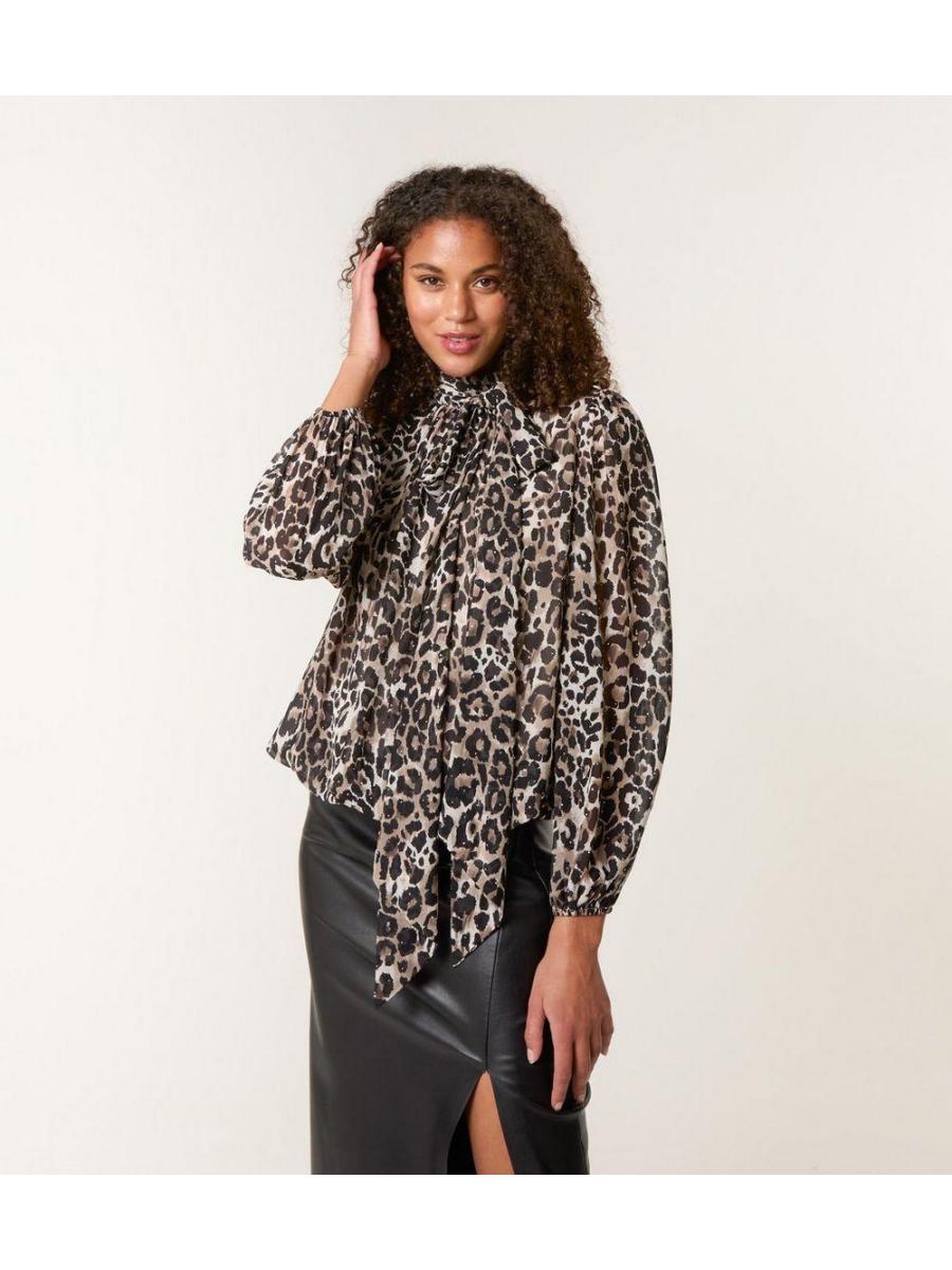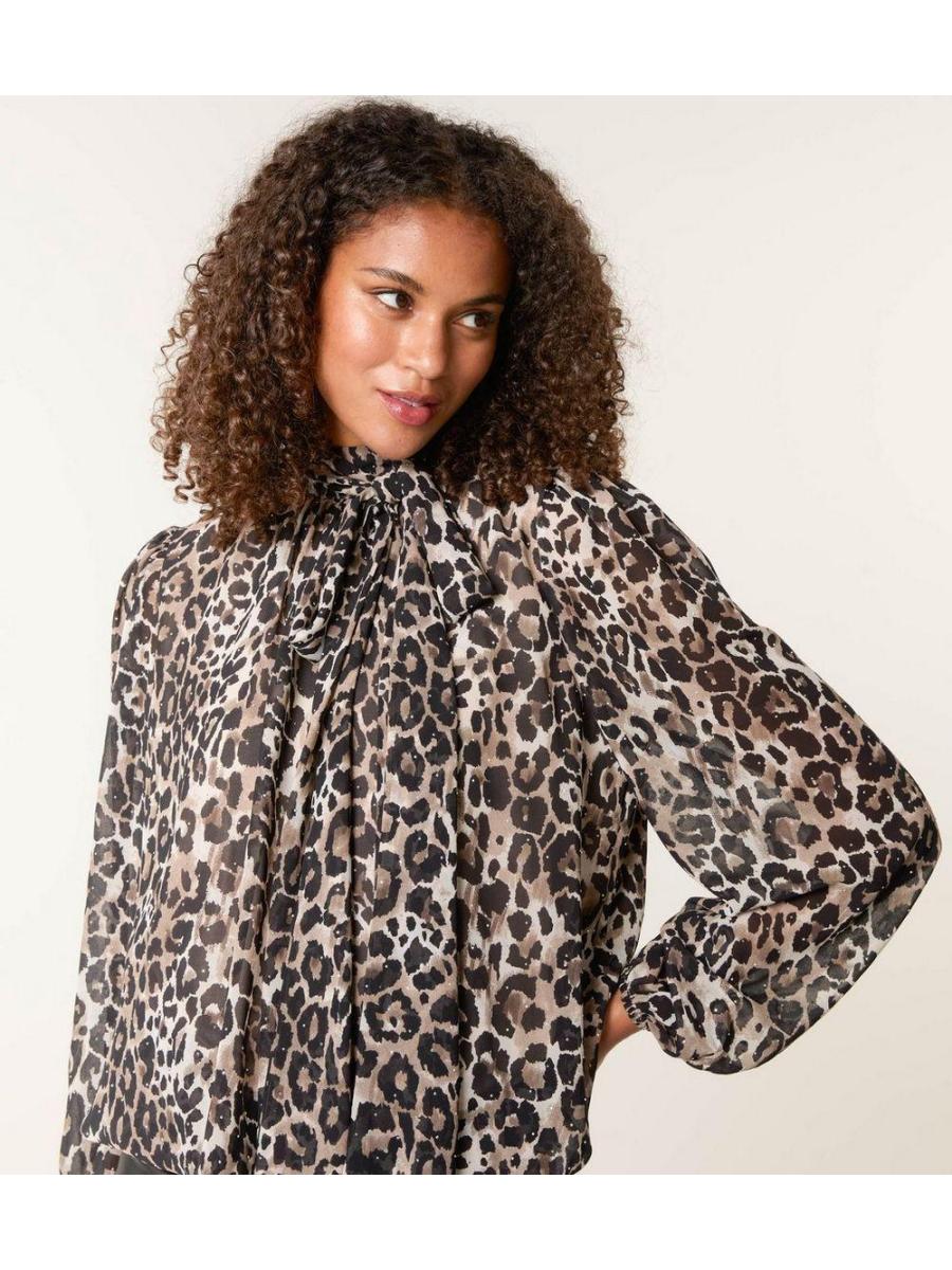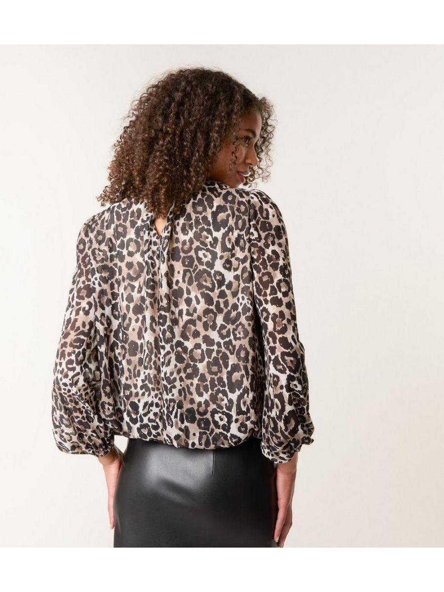 Blue Vanilla Brown Leopard Print Diamante Stud Puffball Hem Blouse