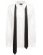 粘胶纤维混纺长袖领带衬衫 - 白色/黑色 - 女士 - Eenk - 正面纽扣开合.