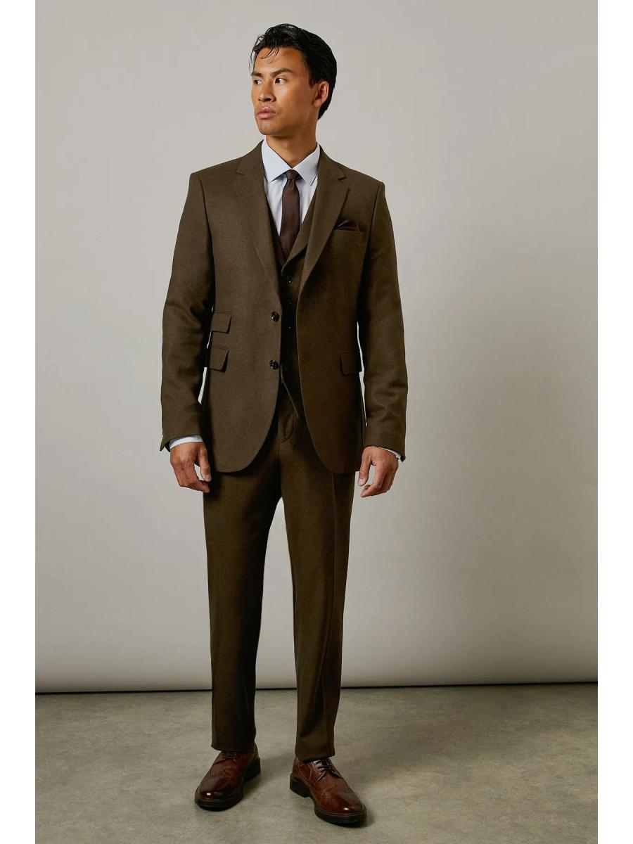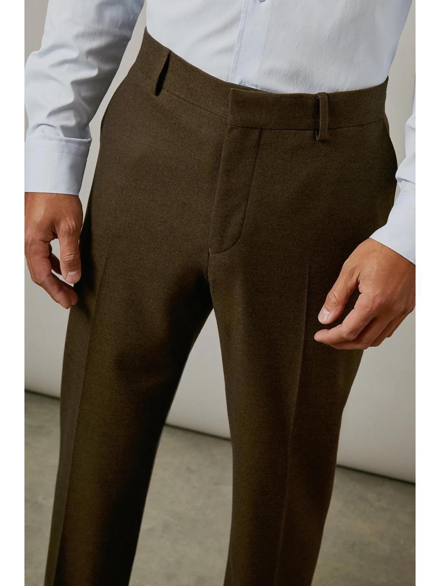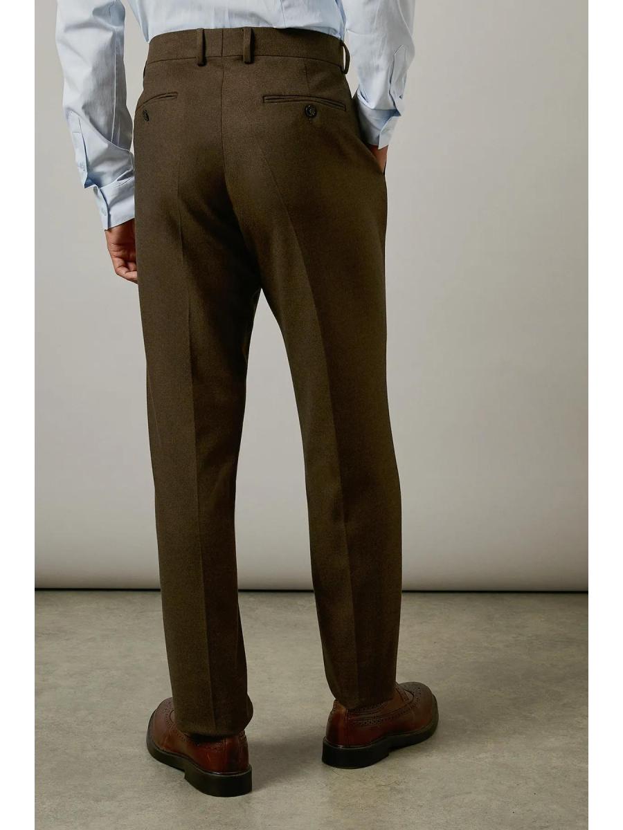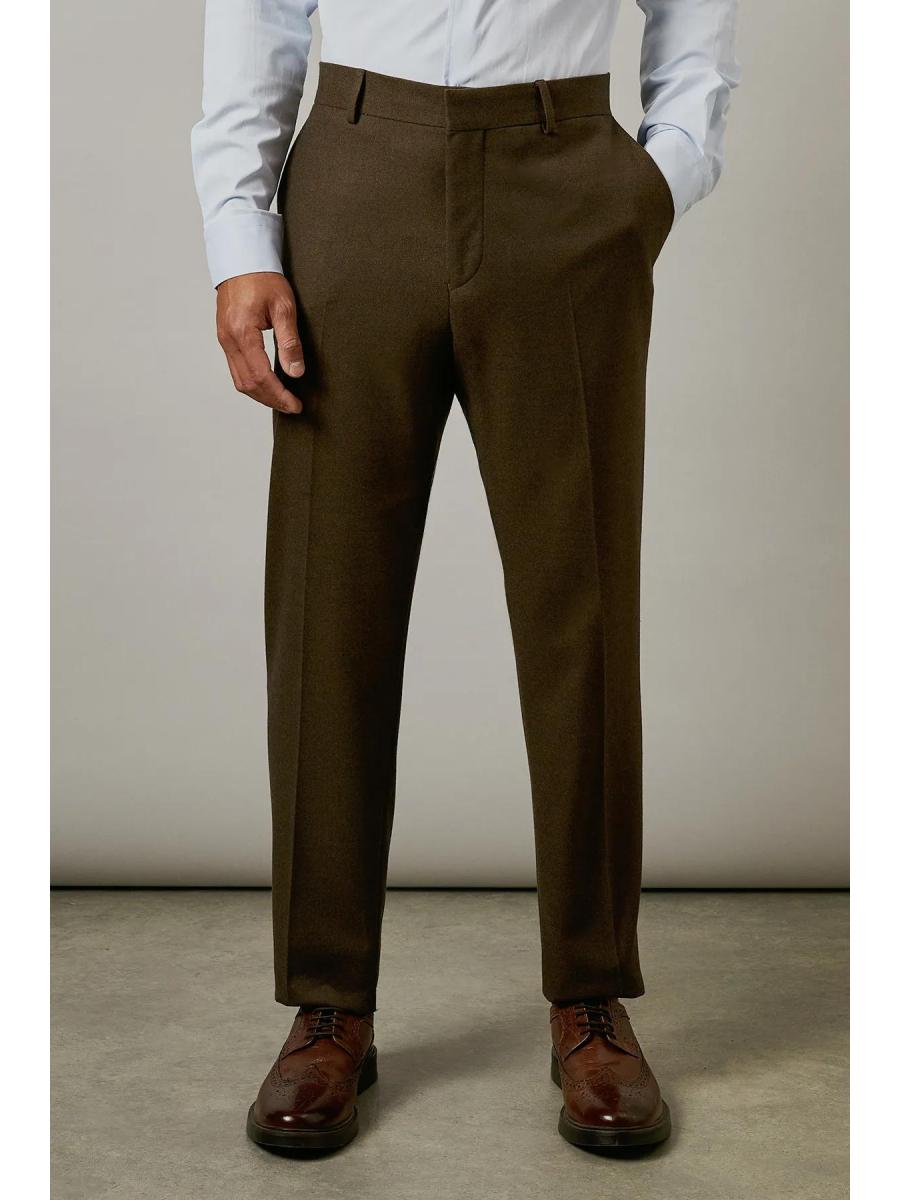 \u003cdiv\u003e \u003cul\u003e \u003cli\u003eTailored fit design offering a refined silhouette that defines your shape whilst maintaining comfort\u003c/li\u003e \u003cli\u003eTweed-look texture adds distinctive character and visual interest to these formal trousers\u003c/li\u003e \u003cli\u003eClean front styling with belt loops for versatile wearing options\u003c/li\u003e \u003cli\u003eBack welt pockets with button closure for secure storage\u003c/li\u003e \u003cli\u003eStraight leg cut with a clean finish that sits perfectly atop formal footwear\u003c/li\u003e\r\n \u003c/ul\u003e\r\n \u003cp\u003eThese sophisticated tweed-look trousers deliver classic British style with contemporary tailoring. The tailored fit sculpts your silhouette whilst allowing ease of movement-perfect for the gentleman who appreciates traditional aesthetics with modern comfort. Style them as shown with a crisp white shirt and matching suit jacket for formal occasions, or dress them down with a quality knit jumper for smart-casual gatherings at the pub. The versatile khaki hue works brilliantly across seasons, making these trousers a wardrobe cornerstone. For business meetings, pair with polished brogues and a coordinating tie; for weekend socials, consider relaxing the look with a quality Oxford shirt, no tie. These Burton trousers bridge the gap between classic formality and everyday sophistication-ideal for the man who values timeless style over fleeting trends.\u003c/p\u003e \u003c/div\u003e