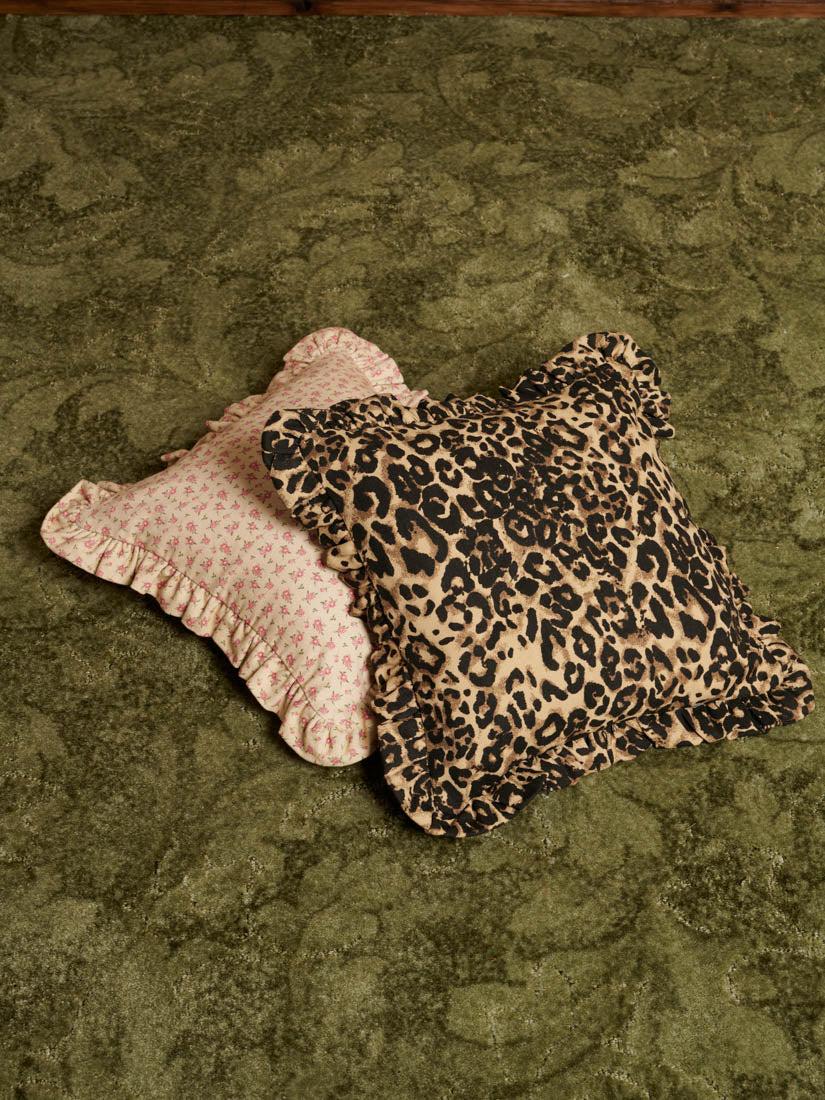 Dramatic yet cozy, with ruffled edges, The Conrad Leopard Ruffle Cushon Cover is like the star cushion in the lounge everyone fights to lean on.