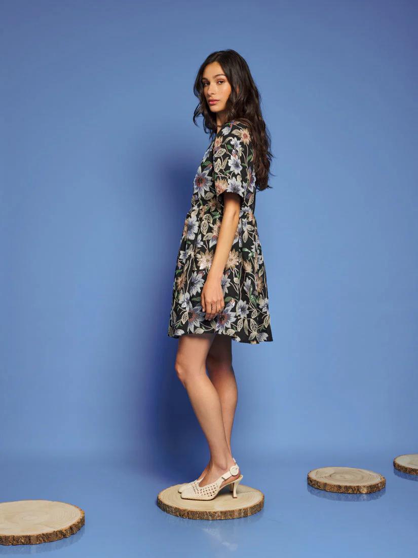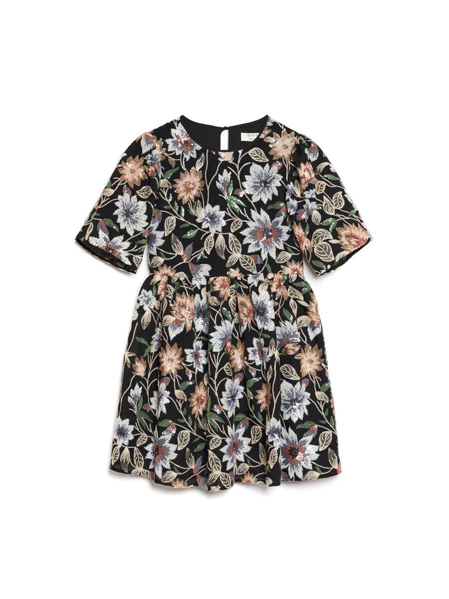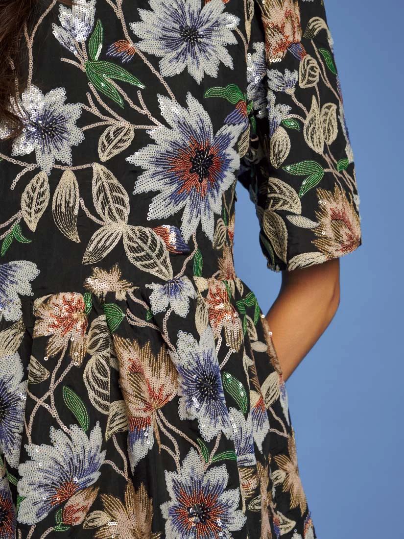 Tiny sequined blooms scatter across the Woodland Embroidered Mini Dress like sunlight through leaves. Three delicate ties trail down the back, each one a secret knot in the forest’s whisper.