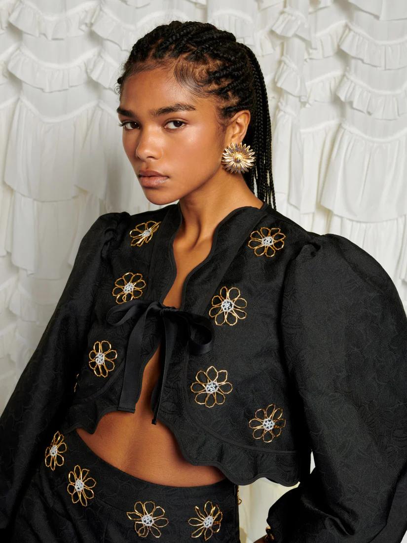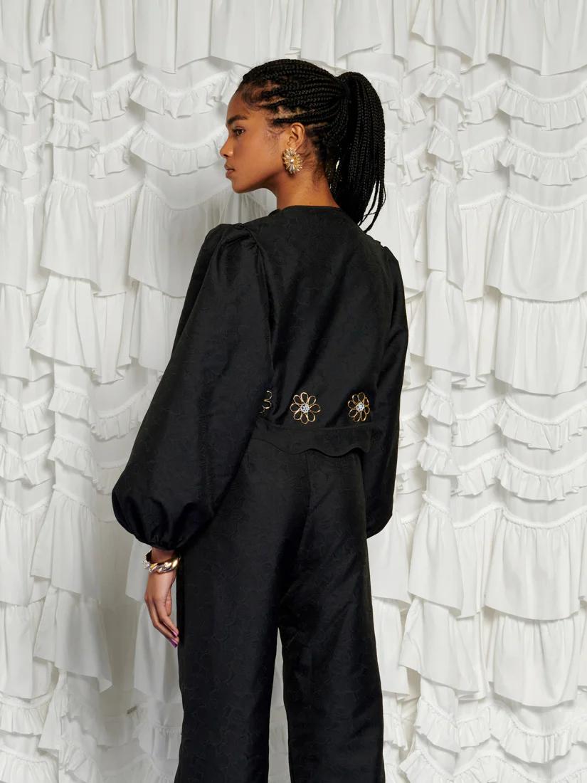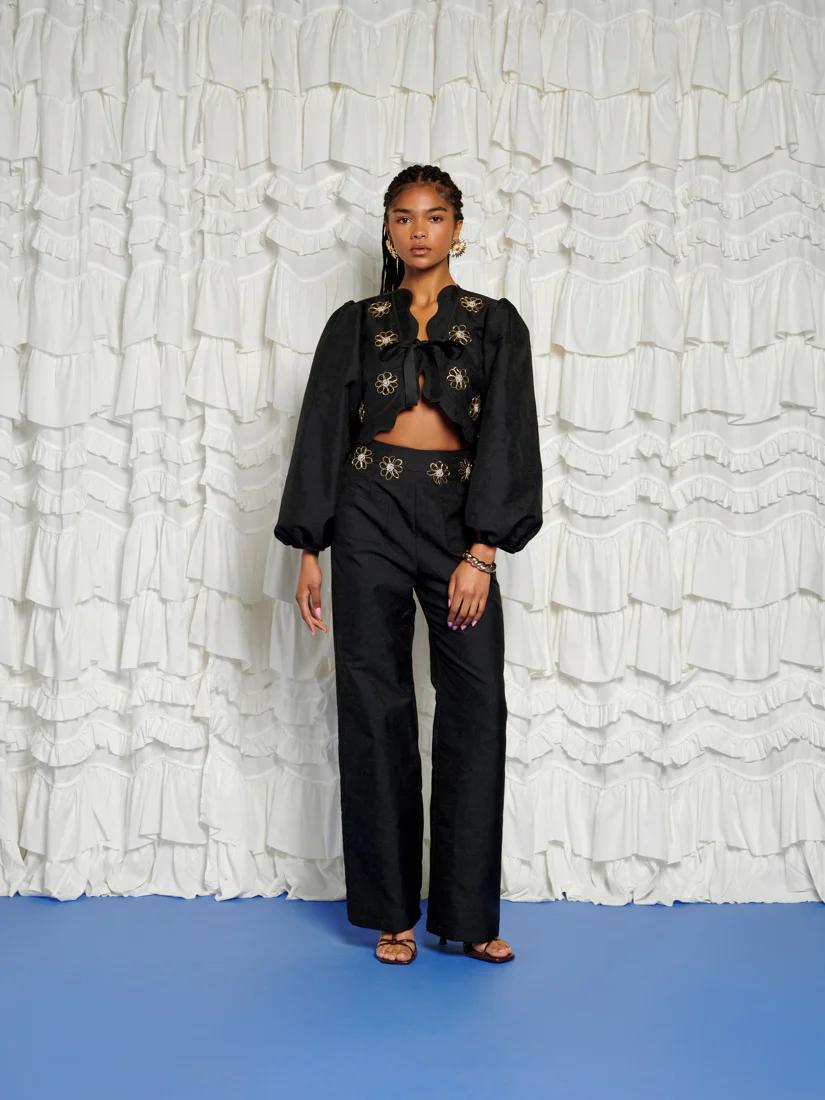 Crafted for moonlit moments and stolen glances, the Sol De Noche Beaded Trousers shimmer with subtle sun-kissed details. Like sunlight filtered through shadows, these trousers move with mystery and magnetism-designed for evenings that turn into memories. Pair with the Sol De Noche Beaded Jacket for a radiant, head-turn