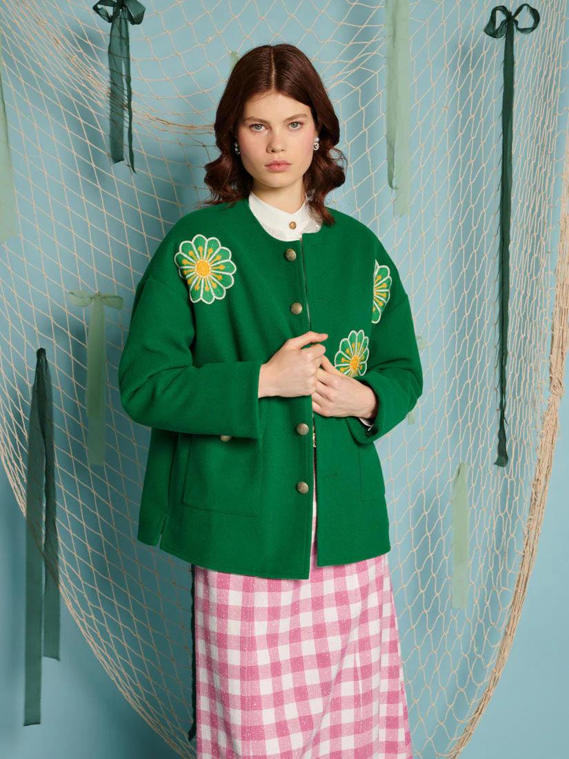 Set sail in style with the Seabound Padded Jacket—a bold statement in vibrant green. This boxy-fit essential blends structure with comfort, featuring inner padding for warmth and standout flower patches for a playful edge. Finished with gleaming gold buttons, it’s the perfect layer to anchor any look. Accessorise with