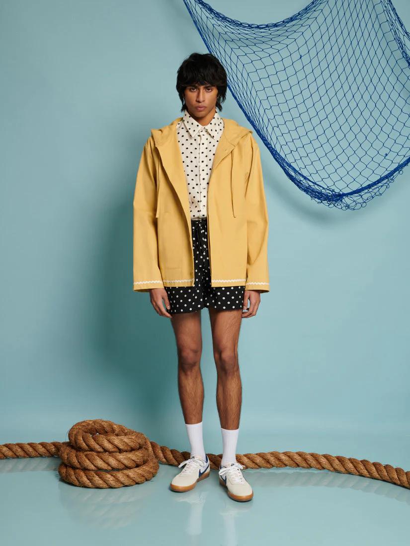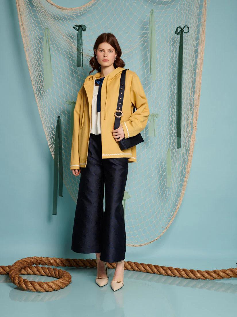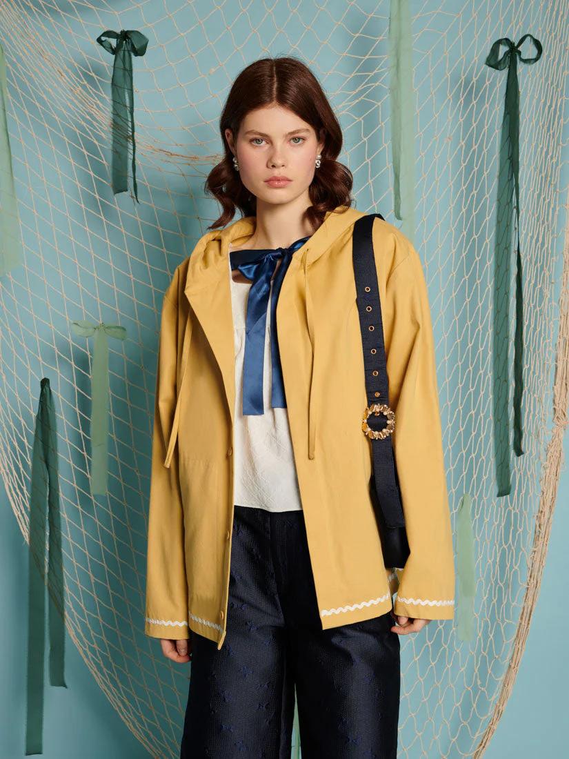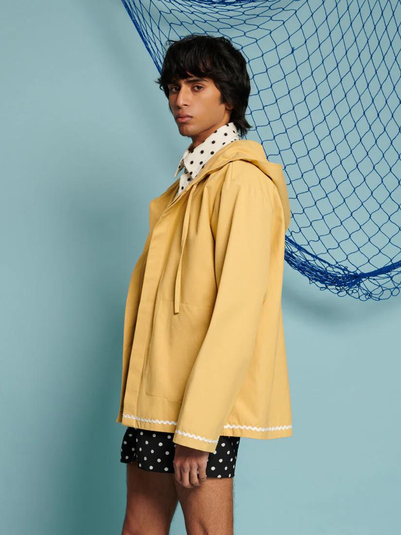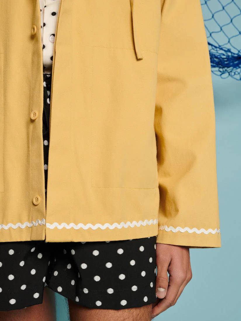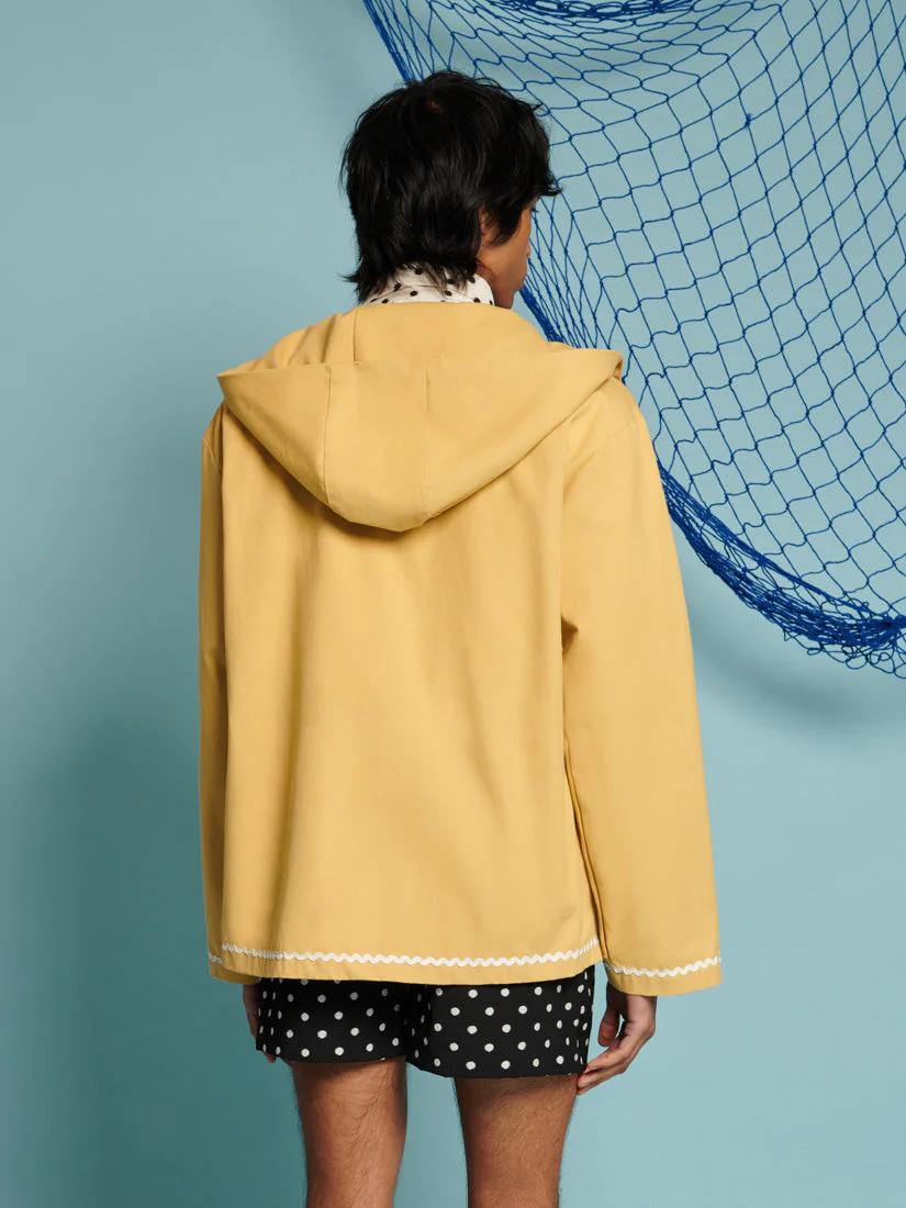 The Irving Hooded Jacket is the ultimate spring layer. Crafted in a structured woven fabric with a relaxed fit, this yellow jacket adds a bold pop of color to your wardrobe. The adjustable drawstring tie and contrast ric-rac trim at the hem and cuffs bring both style and function, making it the perfect bright and breez