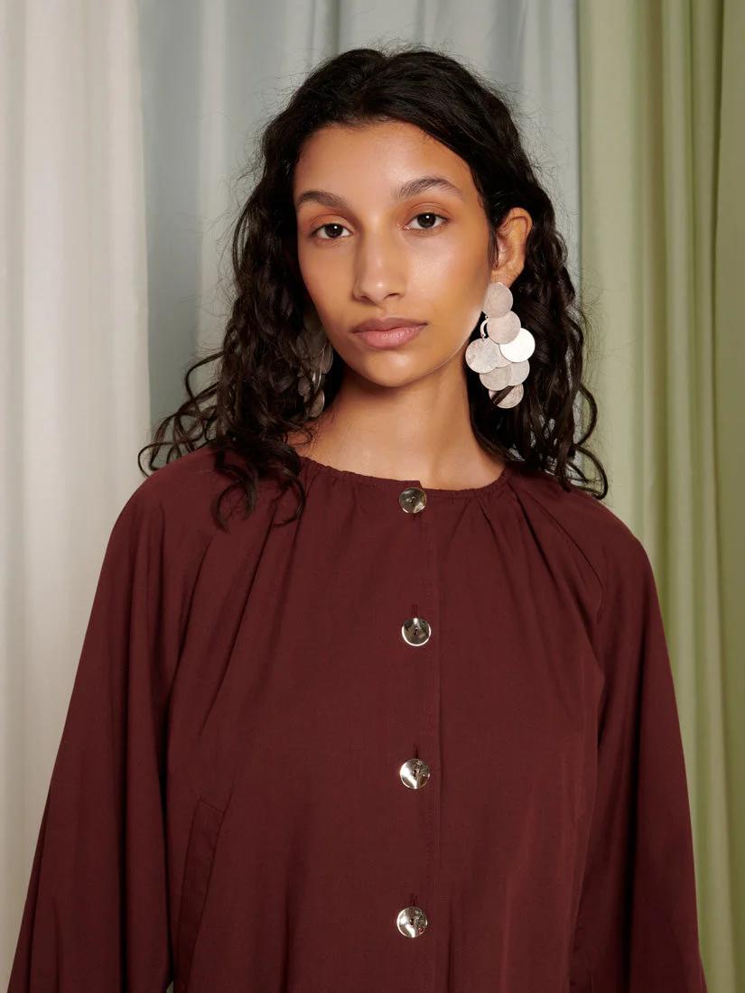 Effortless layering starts with the The Zinnia Jacket. A true staple you’ll reach for on repeat-cut in a rich, warm brown that plays beautifully with everything from neutral palettes to bold prints. Whether you're layering it over your daytime denim or styling it for an evening out with the Solana Midi Skirt, this jack