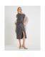 Grey Faux Leather Draped Knot Midi Dress