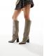 London Rebel Zoe slouchy block heeled knee boots in slate grey