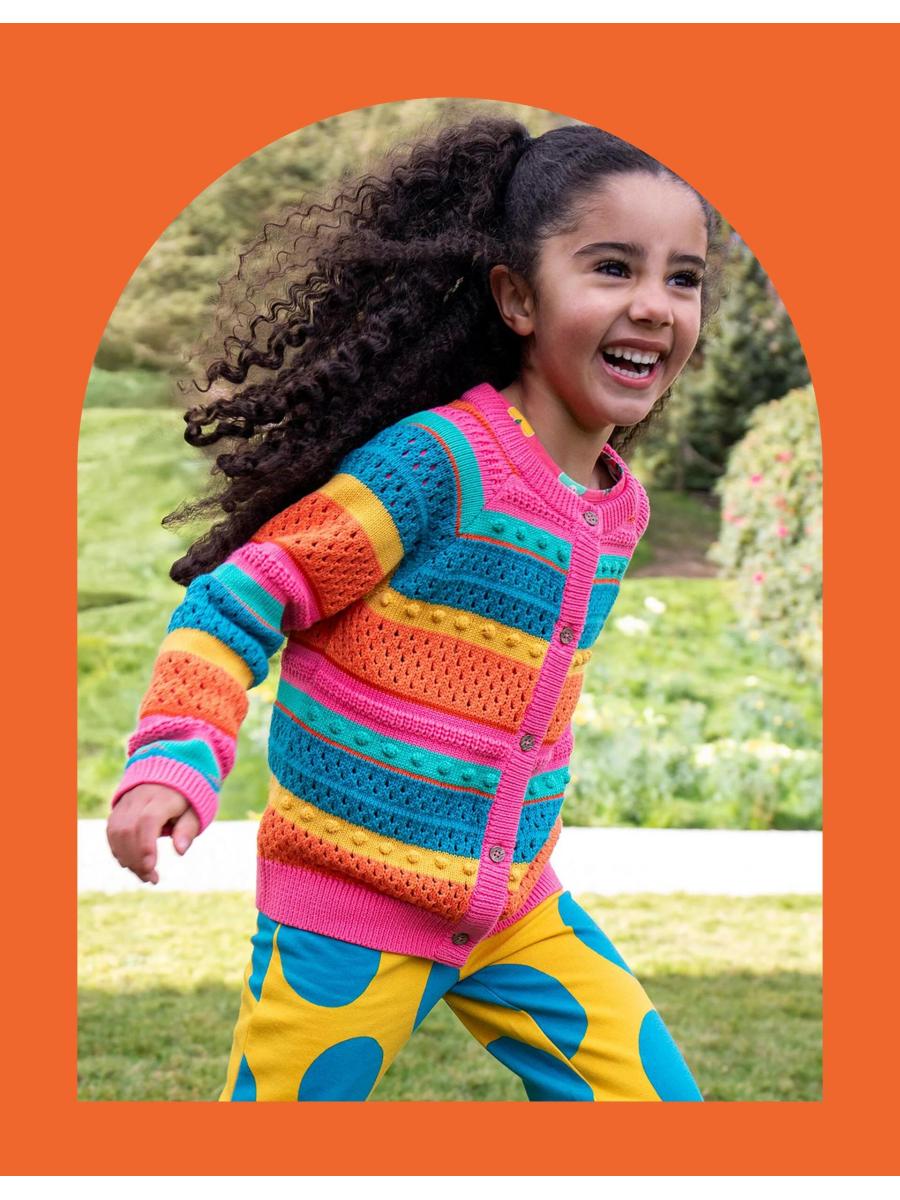The product: Be the rainbow! Ready to brighten up any chilly day, this cardigan is stitched with bold stripes in rainbow colours. Finished with front button fastenings, it's an easy layer to go over all their outfits.