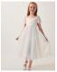 Bohemian beauty. Designed with a crocheted lace bodice, tulle sleeves and a swishy hem to match, this dress is perfect for any special occasion. Finished with a zip fastening and bow to the back. Ivory