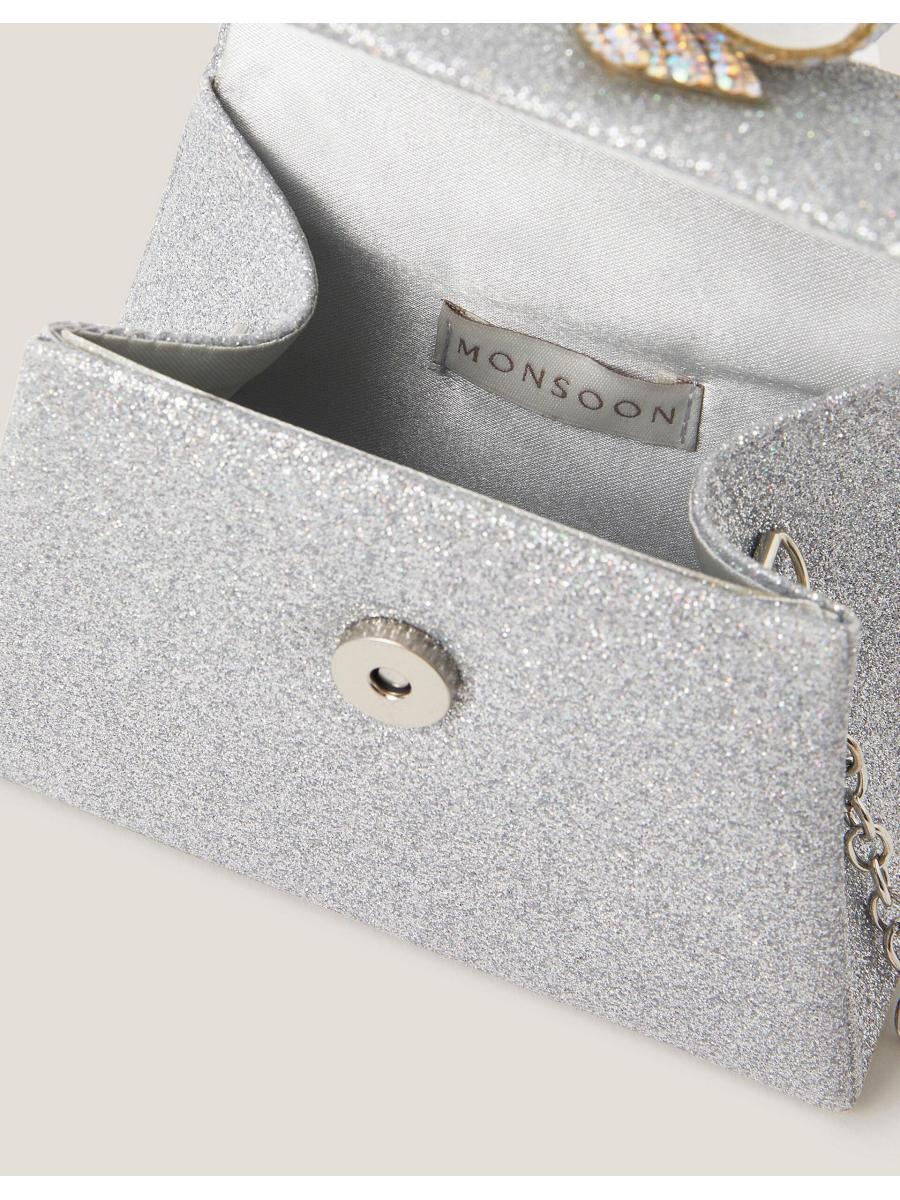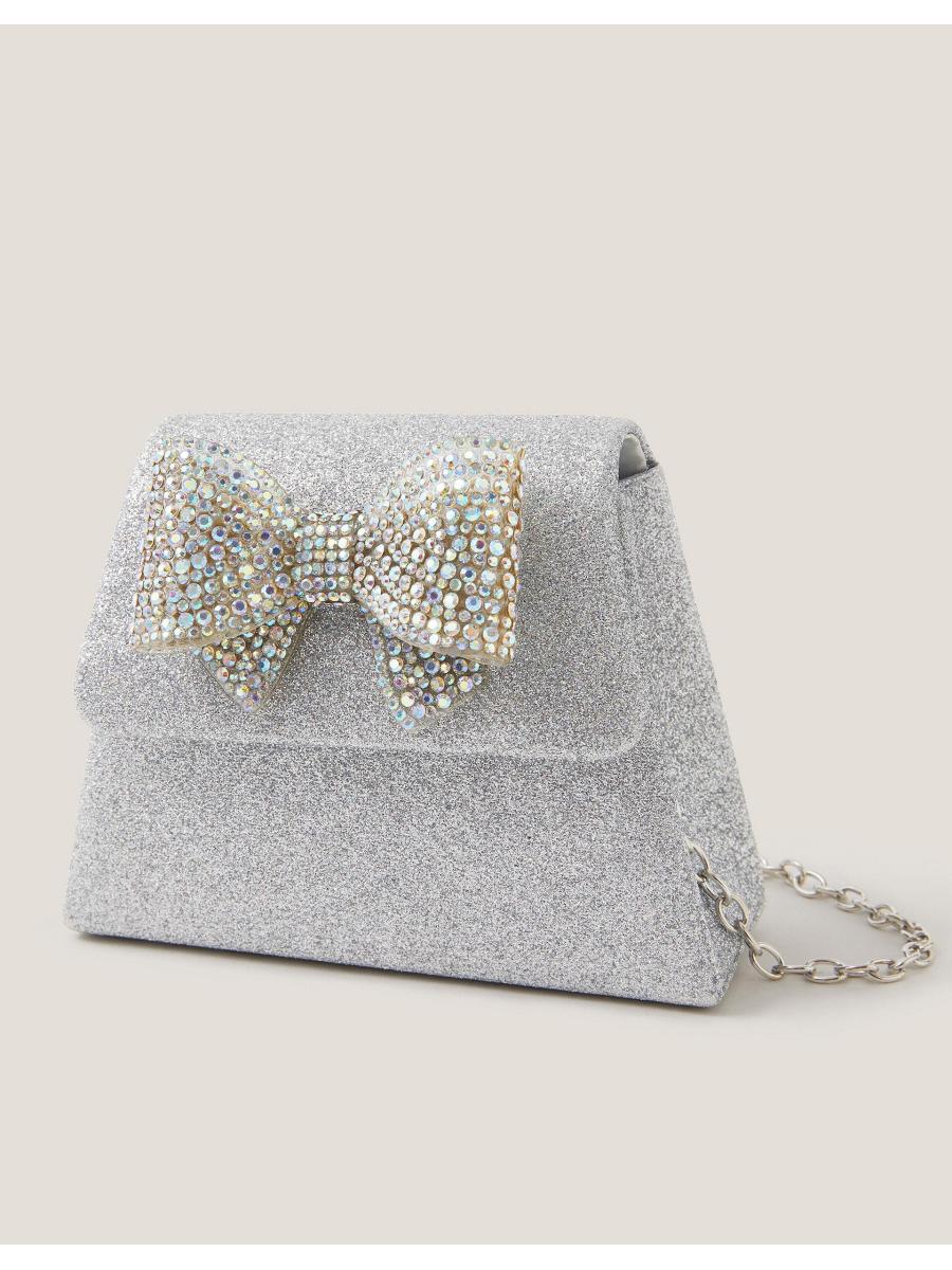 What's better than sparkles? More sparkles! Coated in silver glitter, this gorgeous bag features a statement bow to the front and fastens with a fold-over flap to secure all their treasures. Finished with a silver-tone chain strap.