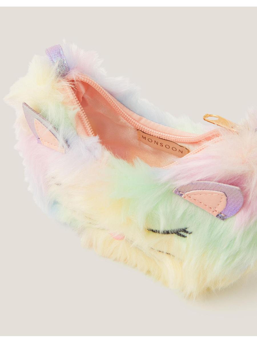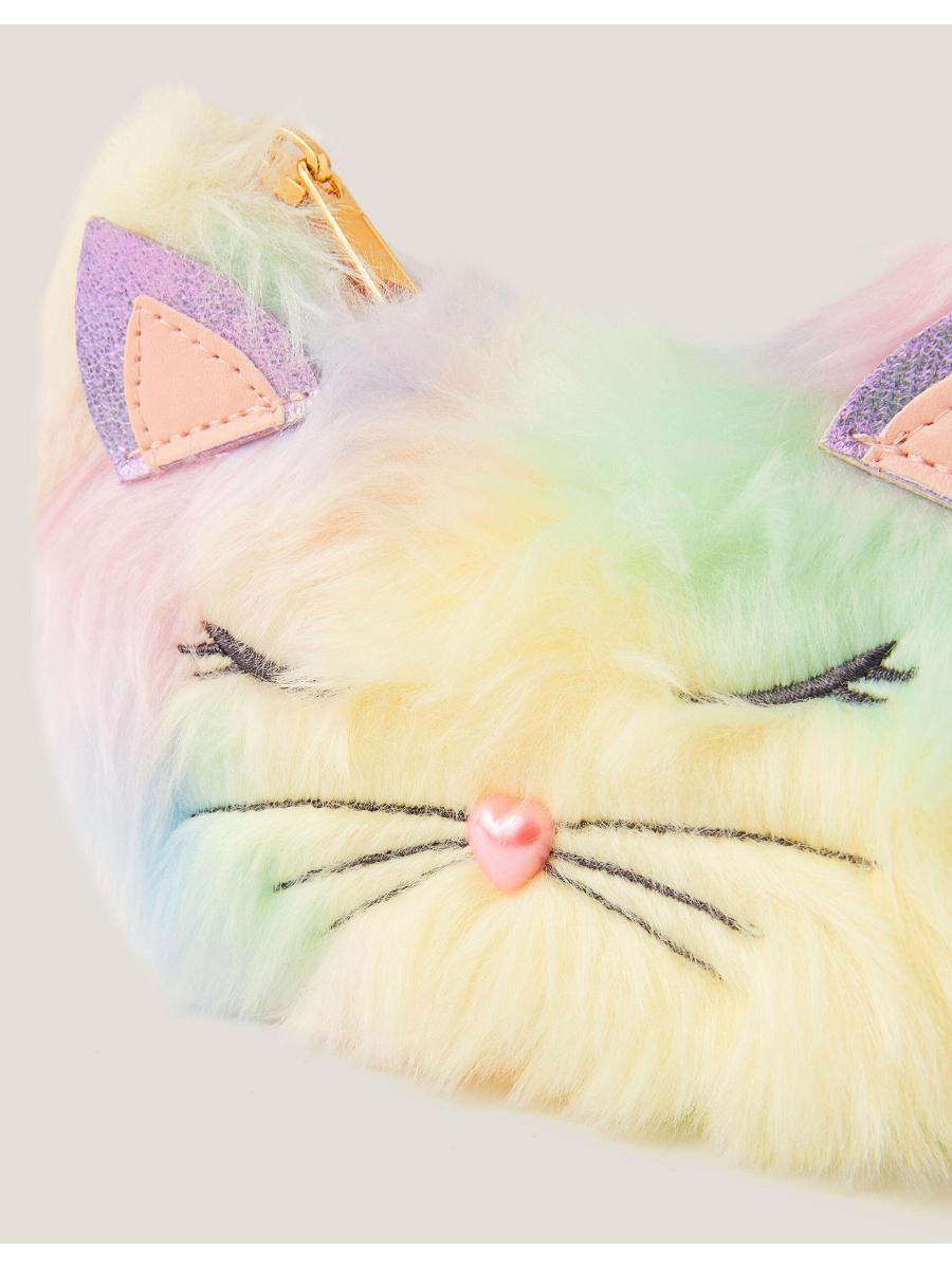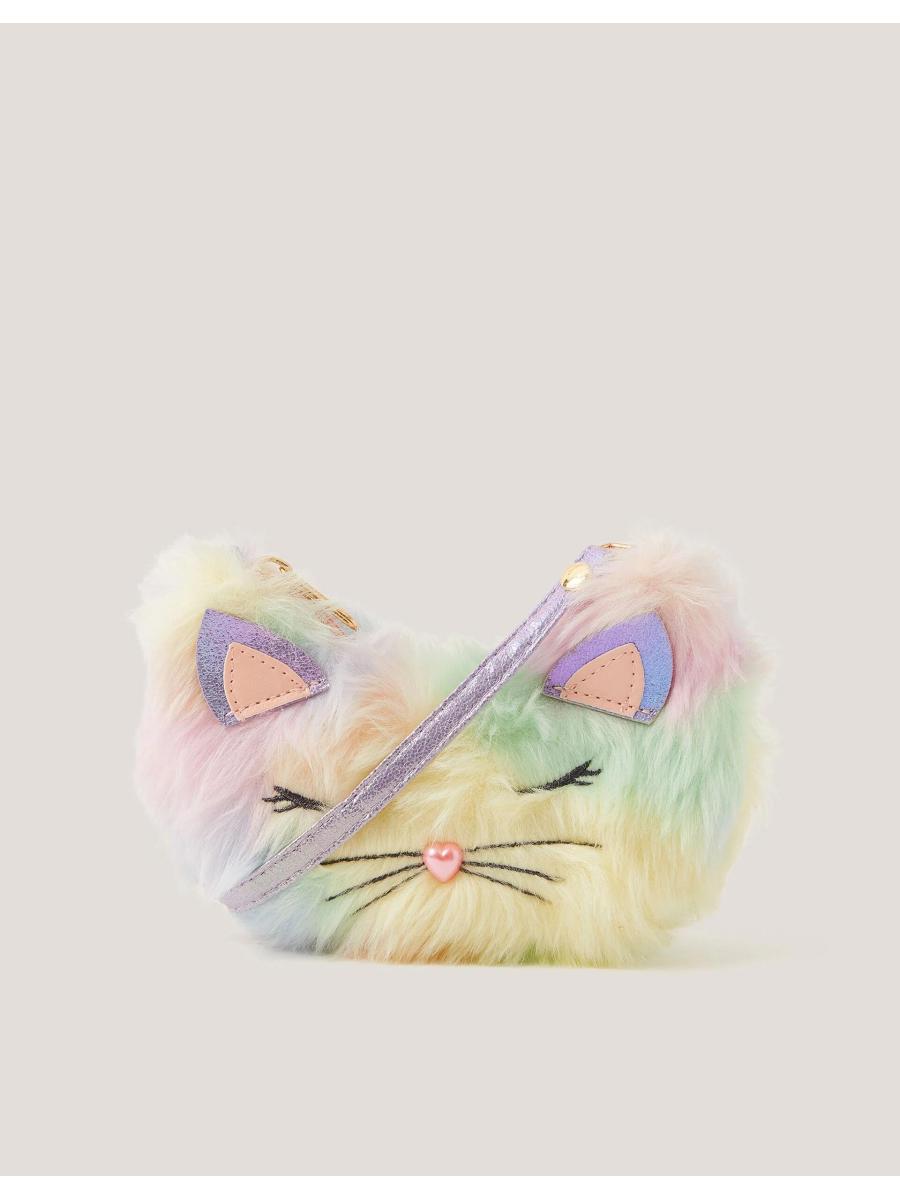 Purrr-fect! Designed in a cute cat shape with fluffy faux fur in pretty pastel colours, this is a bag they will love me-ow and forever. Features a zip fastening and crossbody strap.