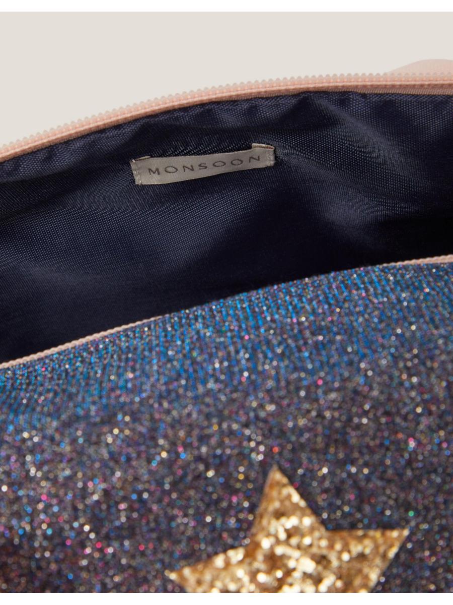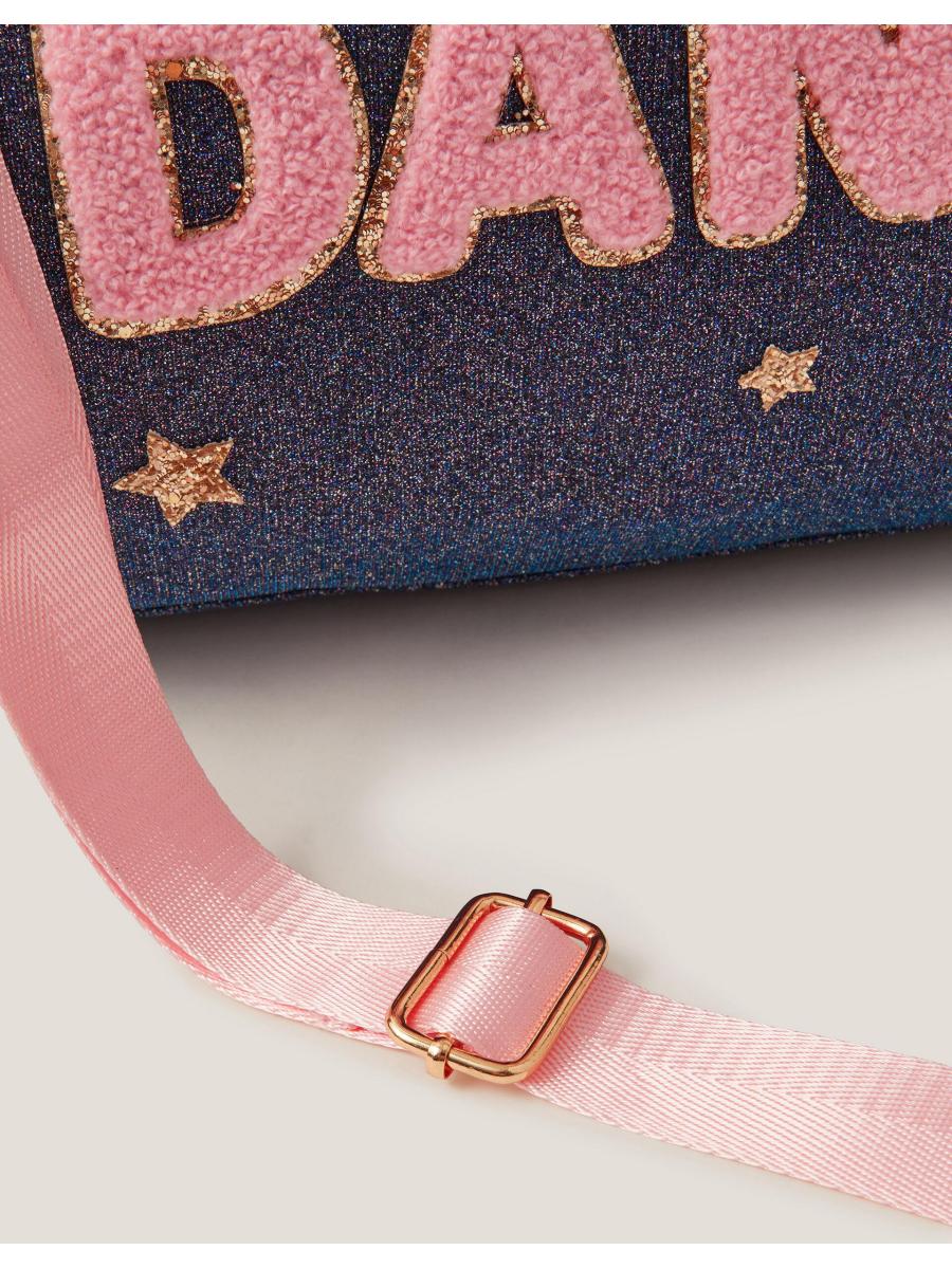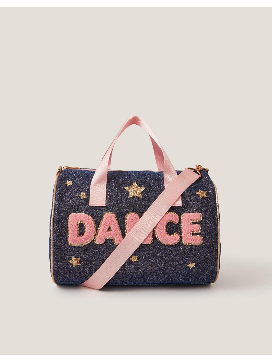 Lights, Camera, Action! Perfect for after-school activities or sleepovers, this duffle bag is designed in a glitzy fabric and decorated with gold stars and a 'DANCE' slogan on the front. Features a zip fastening, two top handles and and a detachable shoulder strap.
