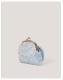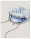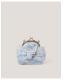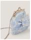 The perfect accessory for a day of "I Do"s. Designed with a clip frame and decorated with white lace over the Cinderella blue fabric, this bag is finished with a pearl-embellished bow at the front and a long chain strap.