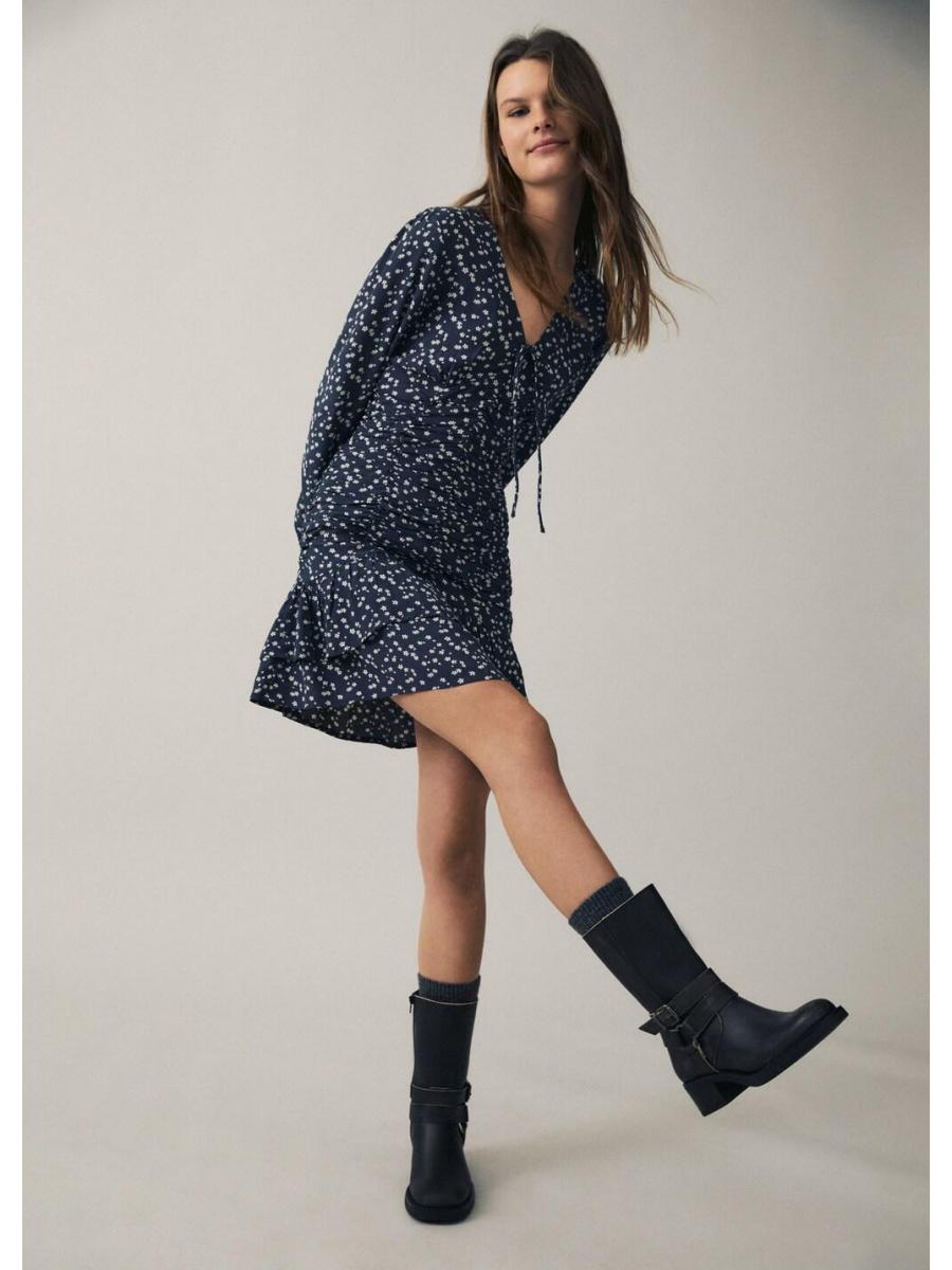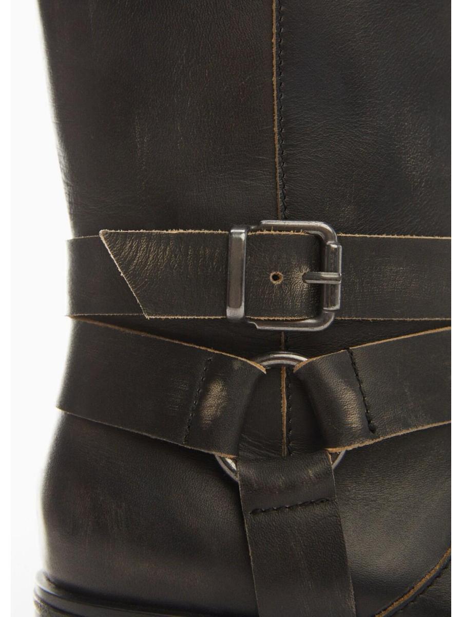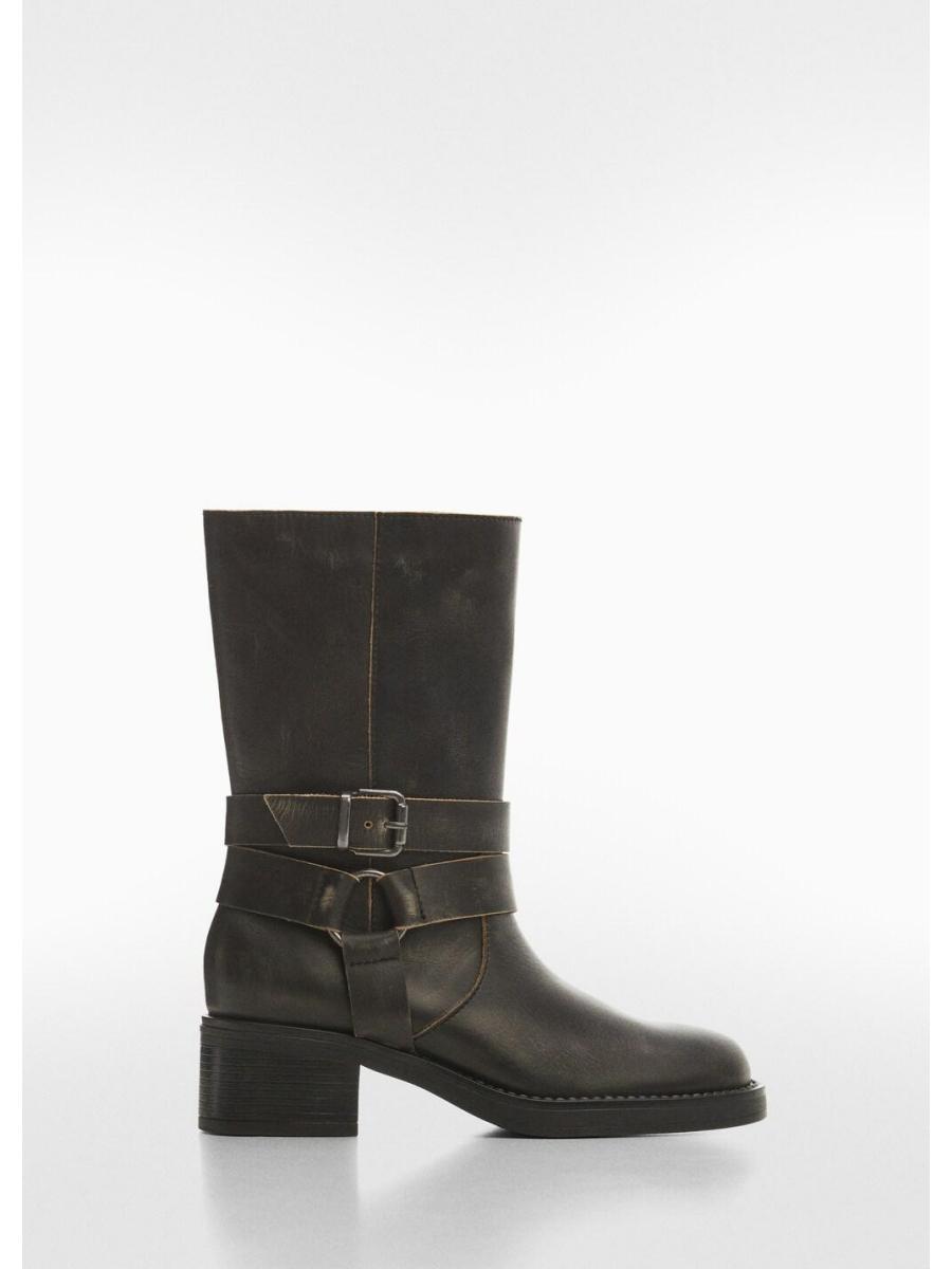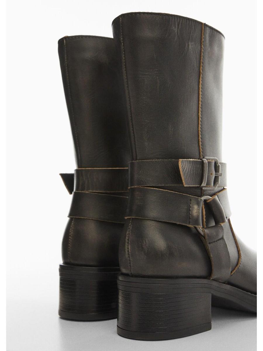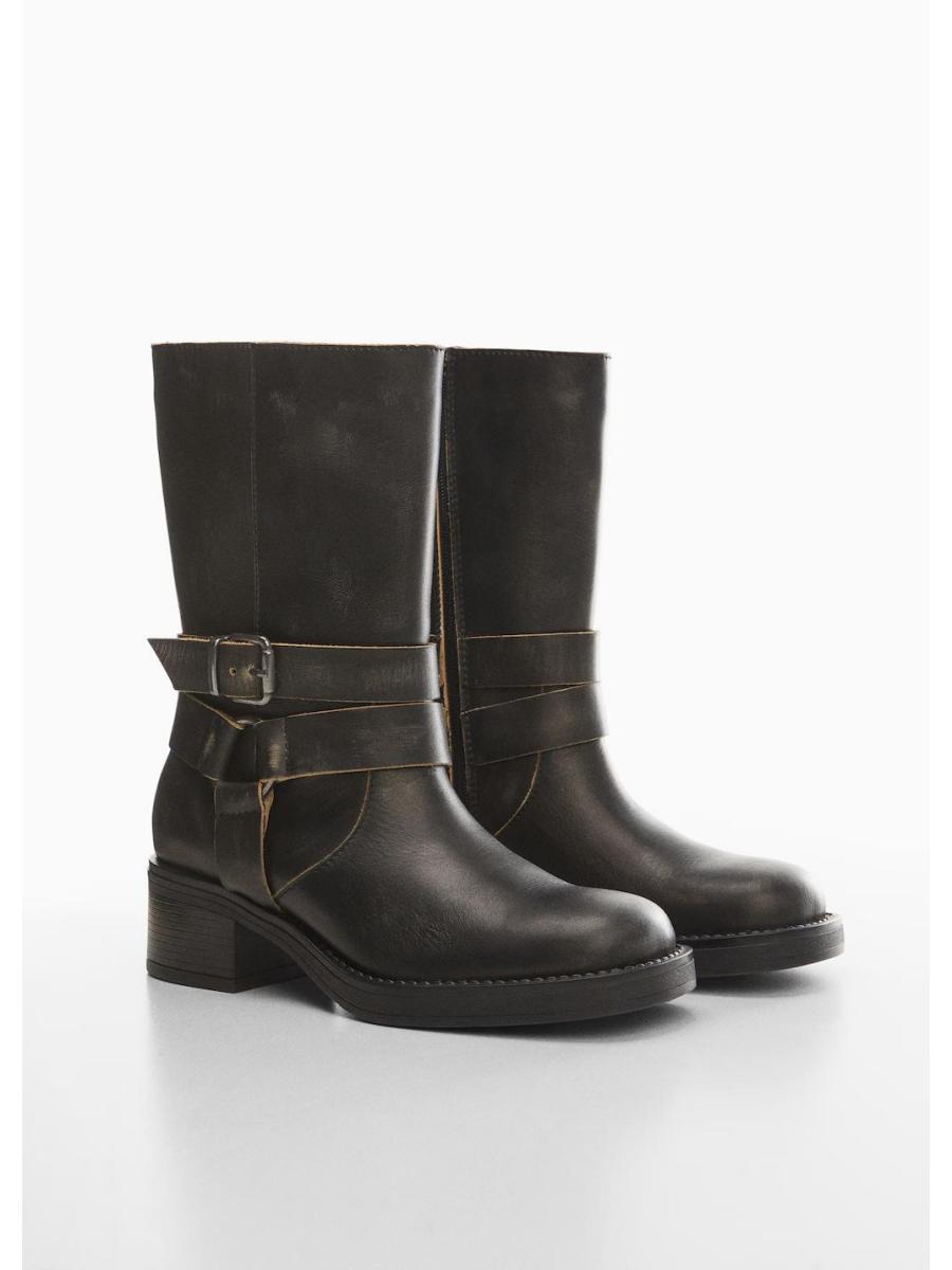 100% piel bovino. Hebillas decorativas. Efecto desgastado. Diseño biker. Caña media. Forro interior. El tacón mide 5 cm