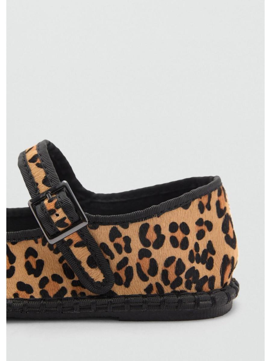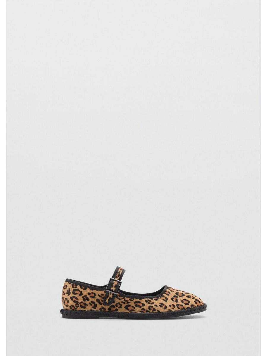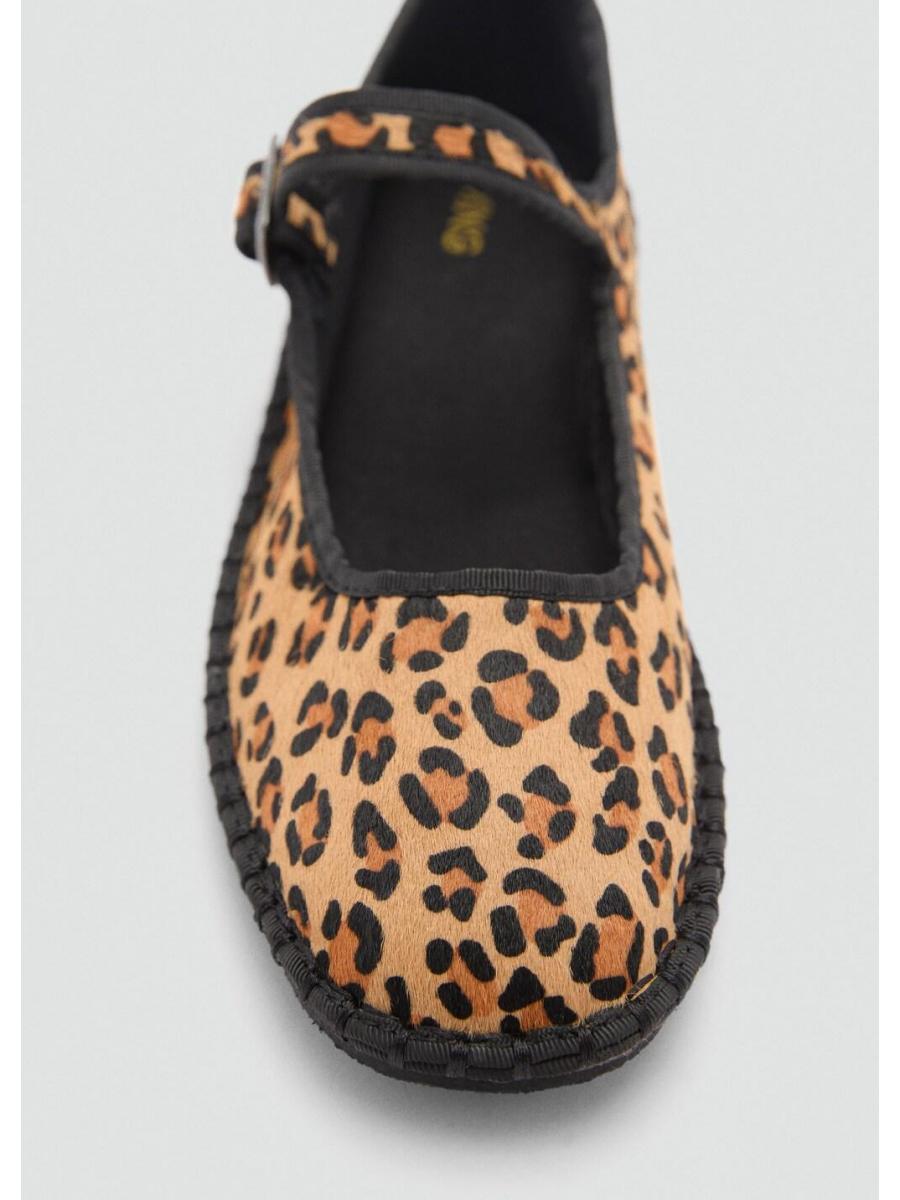 Diseño de leopardo. Punta redonda. Flat. Cierre de tira con hebilla. 100% piel bovino